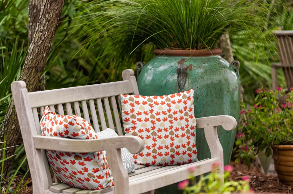 Change up your home decor for the fall season with the Lots of Leaves Pillow from our Flipping for Fall Collection. This indoor/outdoor pillow will add the earthy aesthetics to your porch, deck or patio that you''ve been looking for! This decorative pillow is printed on both sides and crafted with a soft, durable polyester exterior, and filled with down alternative for a crisp look and a comfortable sitting experience. The fabric is resistant to weather, mold, and mildew so you can accentuate your indoor or outdoor decor. It is sewn closed with a knife edge and can be easily spot cleaned or dry cleaned. The warm tones of this collection will envelop you in comfort and delight you throughout the season.