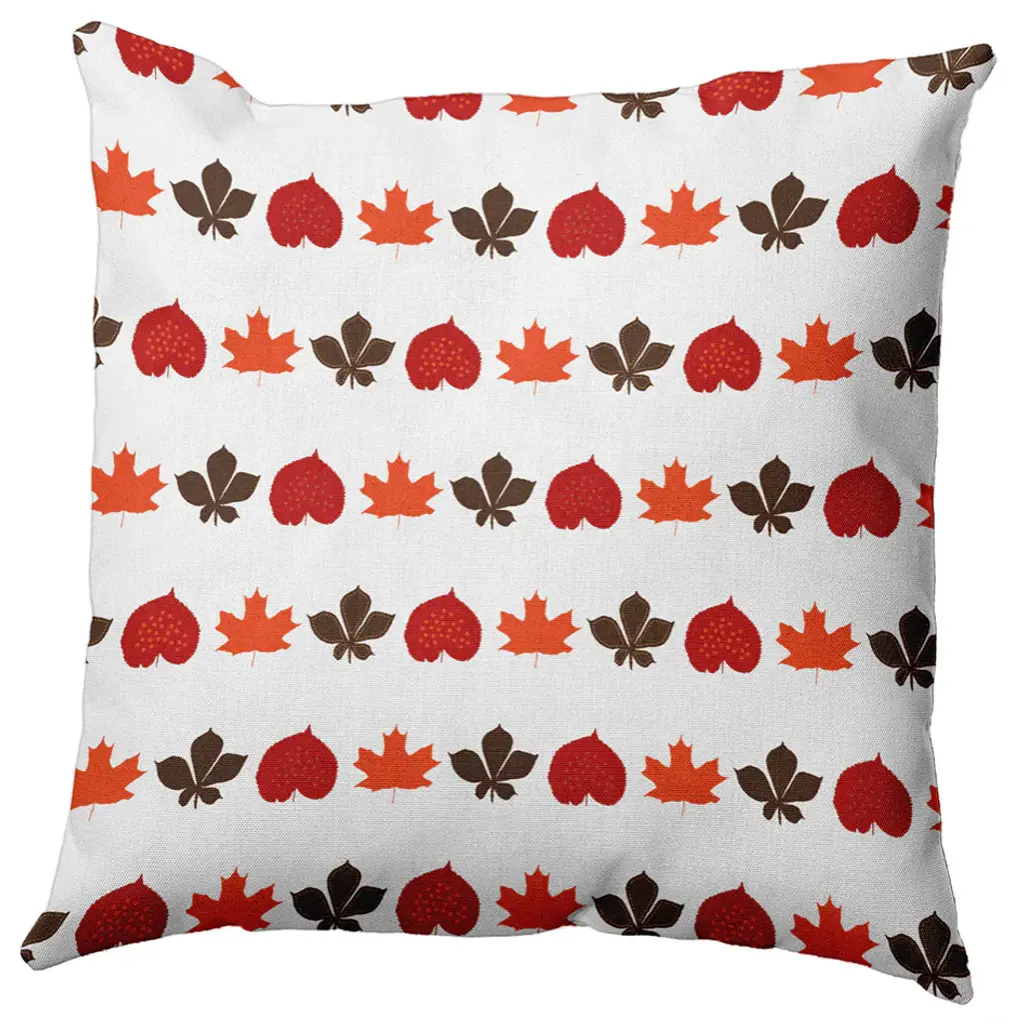 Change up your home decor for the fall season with the Lots of Leaves Pillow from our Flipping for Fall Collection. This indoor/outdoor pillow will add the earthy aesthetics to your porch, deck or patio that you''ve been looking for! This decorative pillow is printed on both sides and crafted with a soft, durable polyester exterior, and filled with down alternative for a crisp look and a comfortable sitting experience. The fabric is resistant to weather, mold, and mildew so you can accentuate your indoor or outdoor decor. It is sewn closed with a knife edge and can be easily spot cleaned or dry cleaned. The warm tones of this collection will envelop you in comfort and delight you throughout the season.