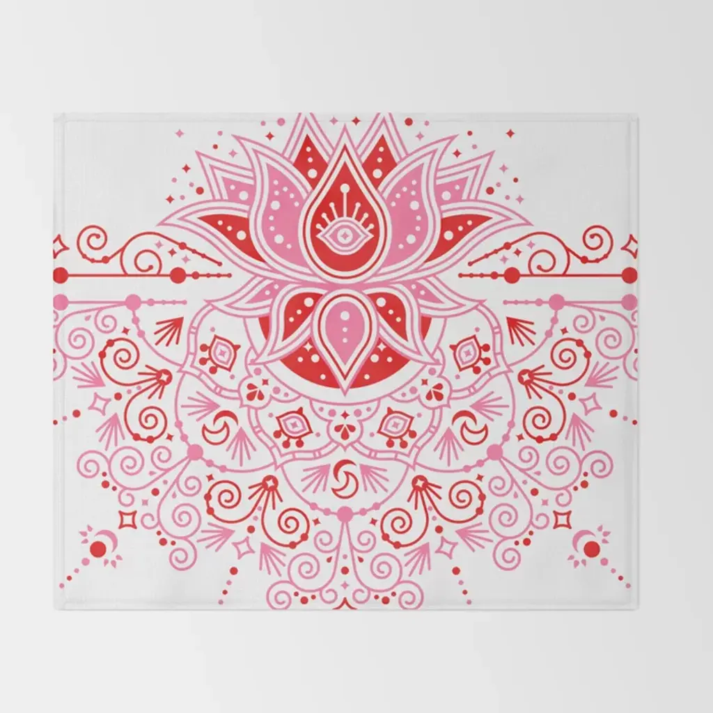 Lotus Blossom Mandala – Red & Pink Palette Throw Blanket