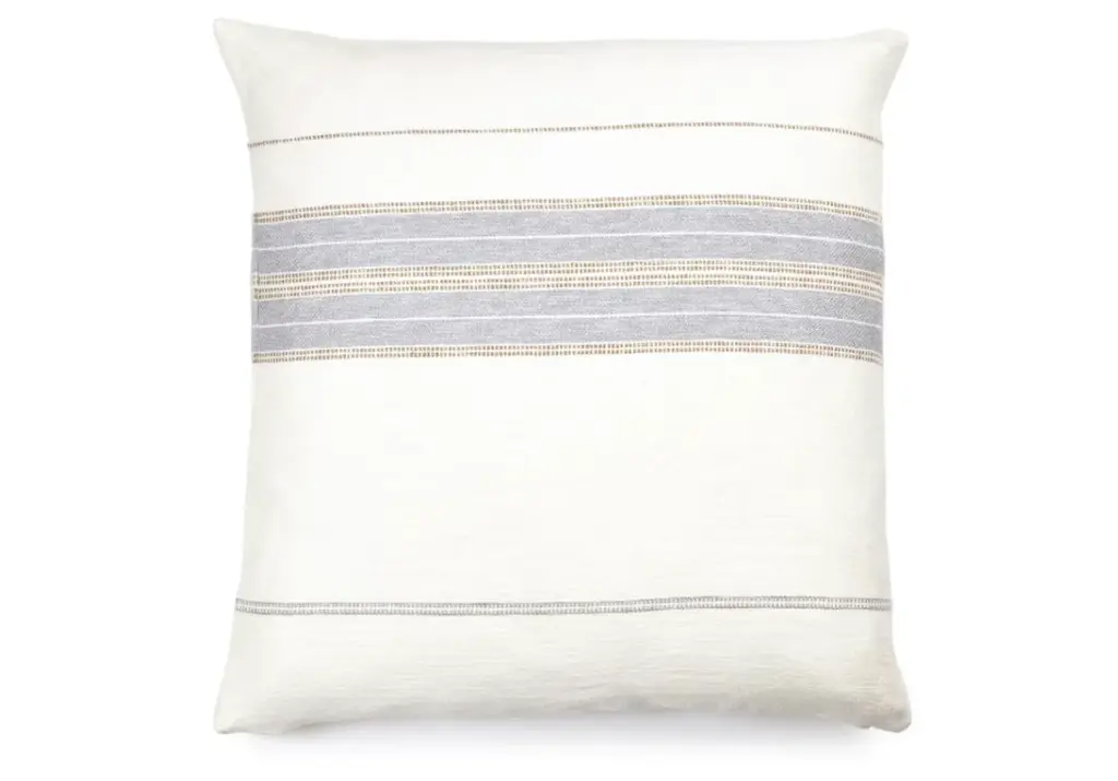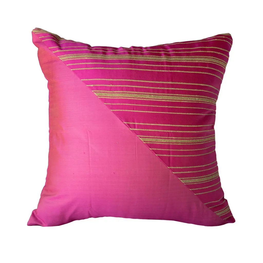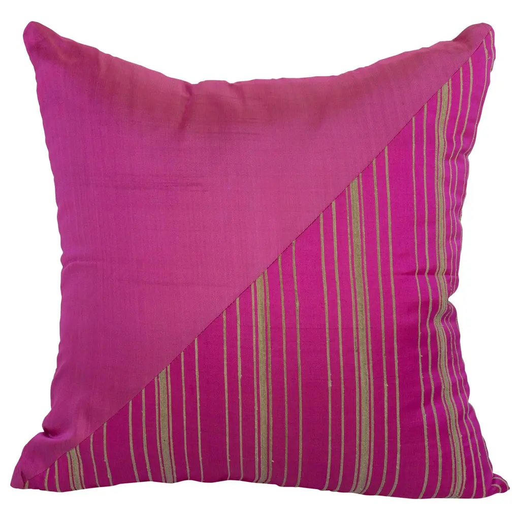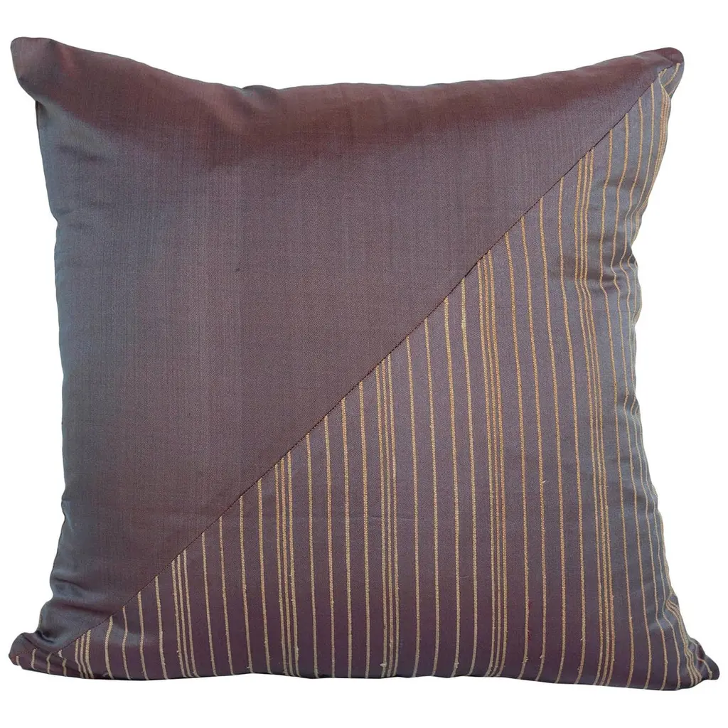 Handwoven 100% silk and lotus flower plant detail adorn this rare pillow, woven by the weavers who live on floating homes on Inle lake, Myanmar. We visited the workshop many moons ago, and were stunned by the fine hand weaving skills and detail of the stalks of the lotus flower plant that are harvested from the lake were weavers have lived for generations.Dimensions: 18" x 18" zipper with insert.Insert: High quality, custom 10/90 duck feather/down insert will hold its shape for years to come.Care: Dry clean only please.People, not machines: All silk pieces are woven by hand on wooden looms. Slight inconsistencies of thread are part of the handwoven charm.