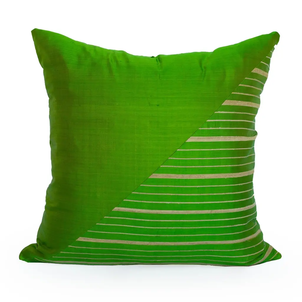 Lotus Flower And Silk Pillow From Myanmar, Chartreuse