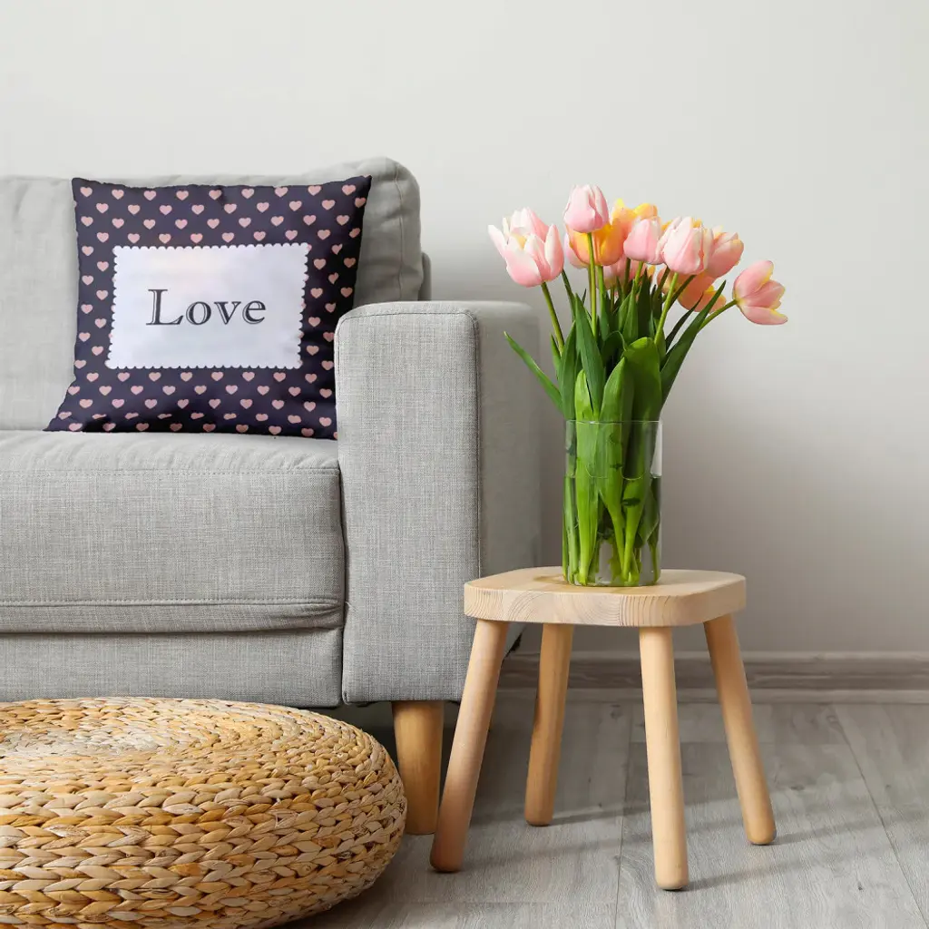 Love is in the air! Share your love this season with the Love Pillow from our Valentine''s Day Collection. This festive and charming pillow will add the perfect touch of love to your sofa, armchair, or bed needs this February! This decorative pillow is printed on both sides and crafted with a soft, durable polyester exterior, and perfectly filled with down alternative for a crisp look and a comfortable sitting experience. It is sewn closed with a knife edge and can be easily spot cleaned or dry cleaned.