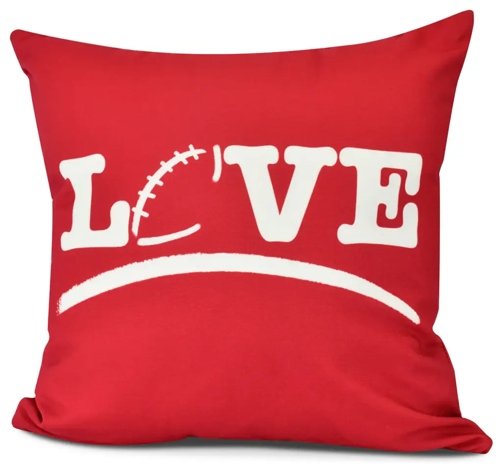 Love Football, Word Print Indoor/outdoor Pillow, Teal,16 X 16-Inch