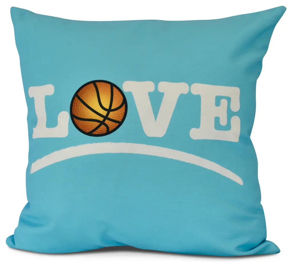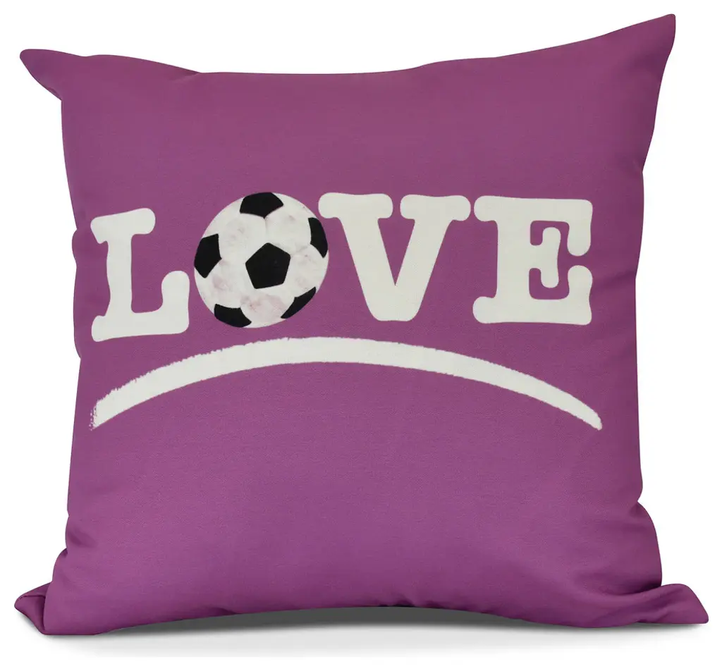 Love Soccer, Word Print Outdoor Pillow, Teal, 16" X 16"