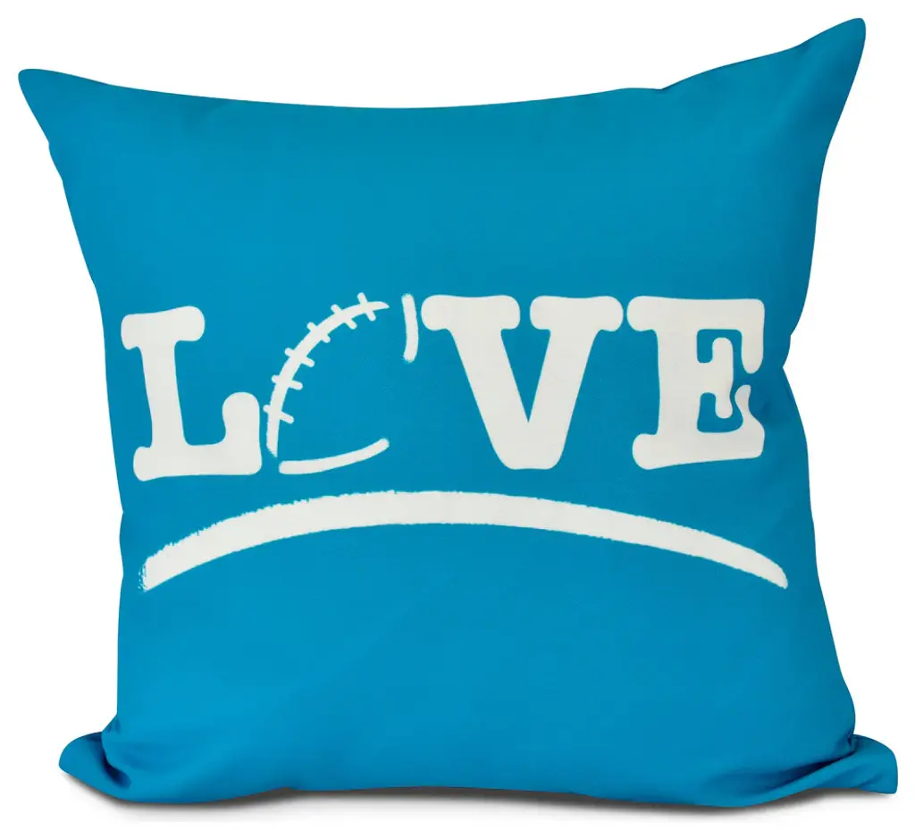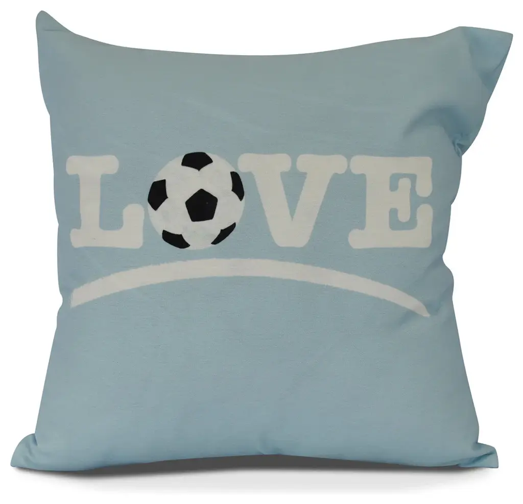 Love Soccer, Word Print Outdoor Pillow, Teal, 20" X 20"