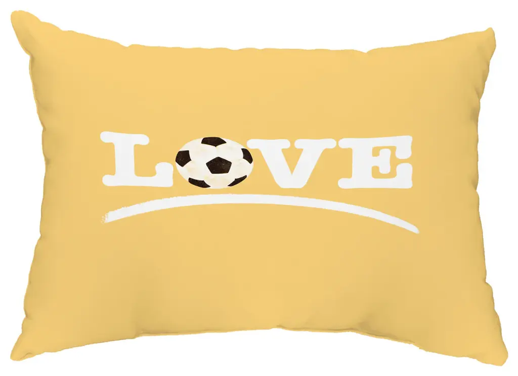 Love Soccer, Word Print Outdoor Pillow, Yellow, 18" X 18"