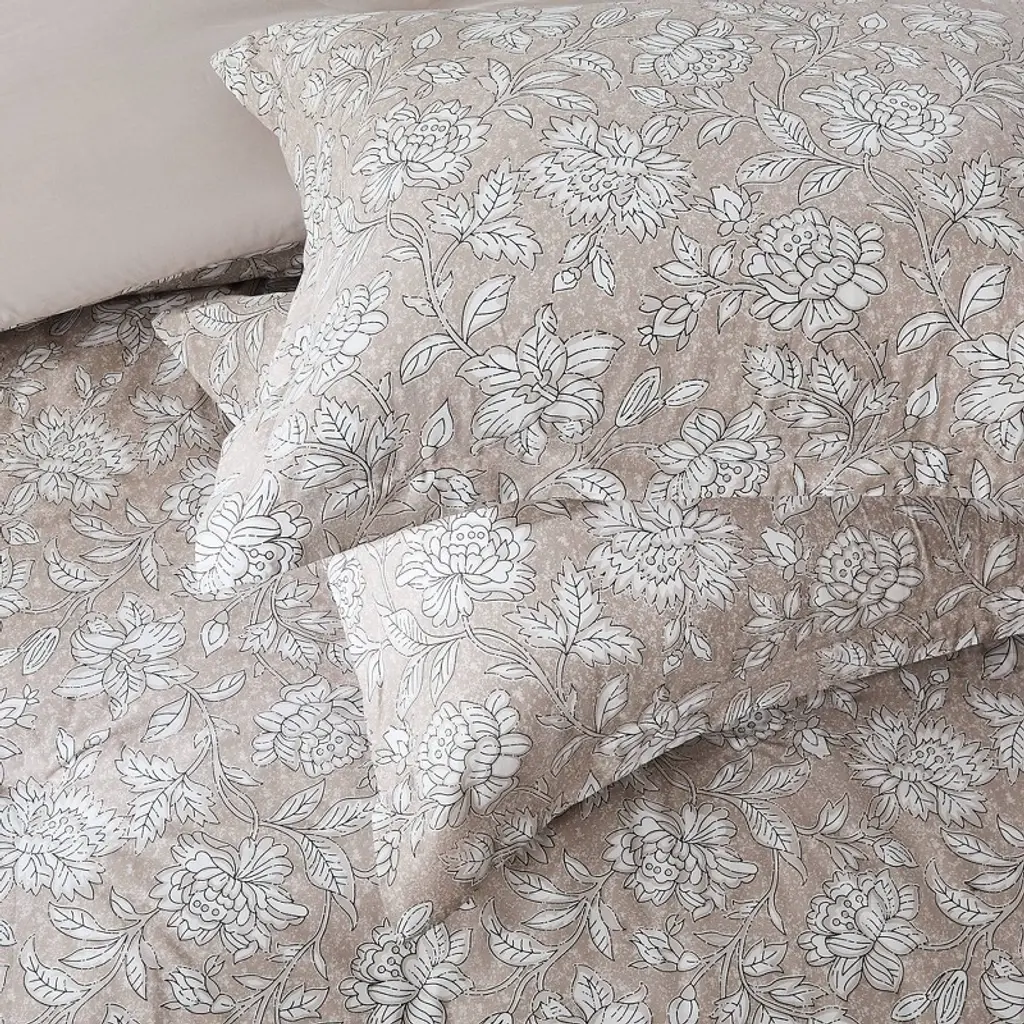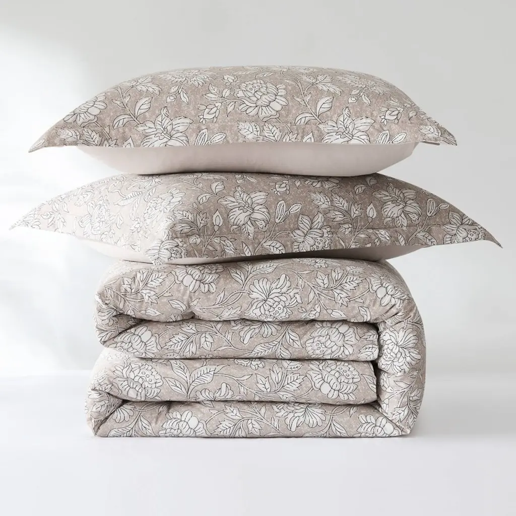 Add florals to your space with this comforter set. Designed with a traditional flower block print, this floral bedding blends boho and modern decor styles. Crafted from 100% cotton with a medium weight polyfill. This fully styled 8 piece bedding set includes 1 comforter, 1 platform bed skirt with a 15 inch drop, 2 shams, 2 euro shams, and 2 decorative throw pillows. STANDARD 100 by OEKO-TEX® certified, all components have been tested and certified free from harmful substances. Machine washable.