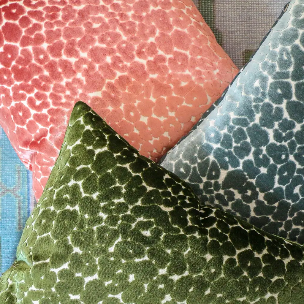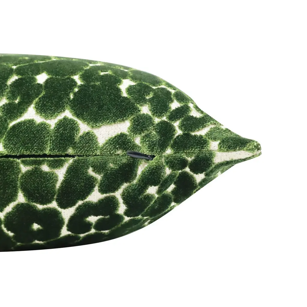 Made in the USA, this cut-velvet pillow features leopard spots on both sides. Feather-and-down fill provides plush comfort. Hidden zipper closure.