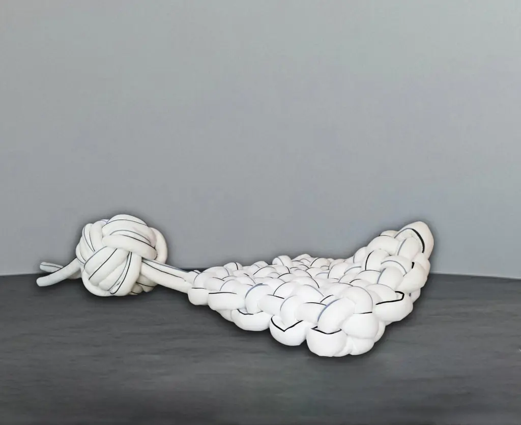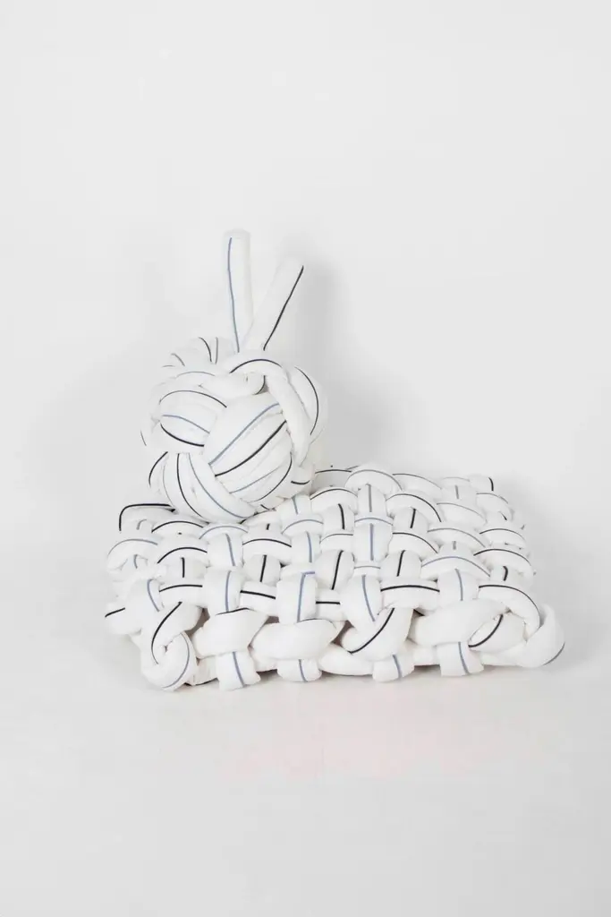 When Tiger Used to Smoke: Collection implies the idea of long-term sustainability by working with masters of each field who deserve much more recognition and incorporating modern furniture design with our traditional culture to make it more approachable.WKND Lab specializes in various design disciplines, including material research, object design, furniture design, and art installation. With a focus on material-driven narratives, WKND Lab communicates its philosophy about the dynamic interplay between design, humanity, and the natural environment. From Tying wishes SeriesCotton, pearl cotton size: 940 x 670 x 200 (mm) Φ40Color: white, sky blue and navy liningCushion/ SeatProduction time is 5 weeks.<4x5> is a multi-functional cushion/stool that highlights the Korean traditional knot-making method interpreted into a contemporary design piece by collaborating with a seamstress who worked on beddings for more than 30 years, adhering to the traditional way of making the knots created with sustainable, animal cruelty-free material. Handcrafted, human-sized, an experimental piece using a range of traditional Korean knots (Chrysanthemum knots: prosperity, success/ ring knot: promise, tie), one of the oldest forms of decorative art that communicates through shape. This versatile piece is meant to both adorn and serve as a piece of furniture to rest on. Working with traditional crafts and experts who deserve far more credit, the project conveys the idea of long-term sustainabilit.