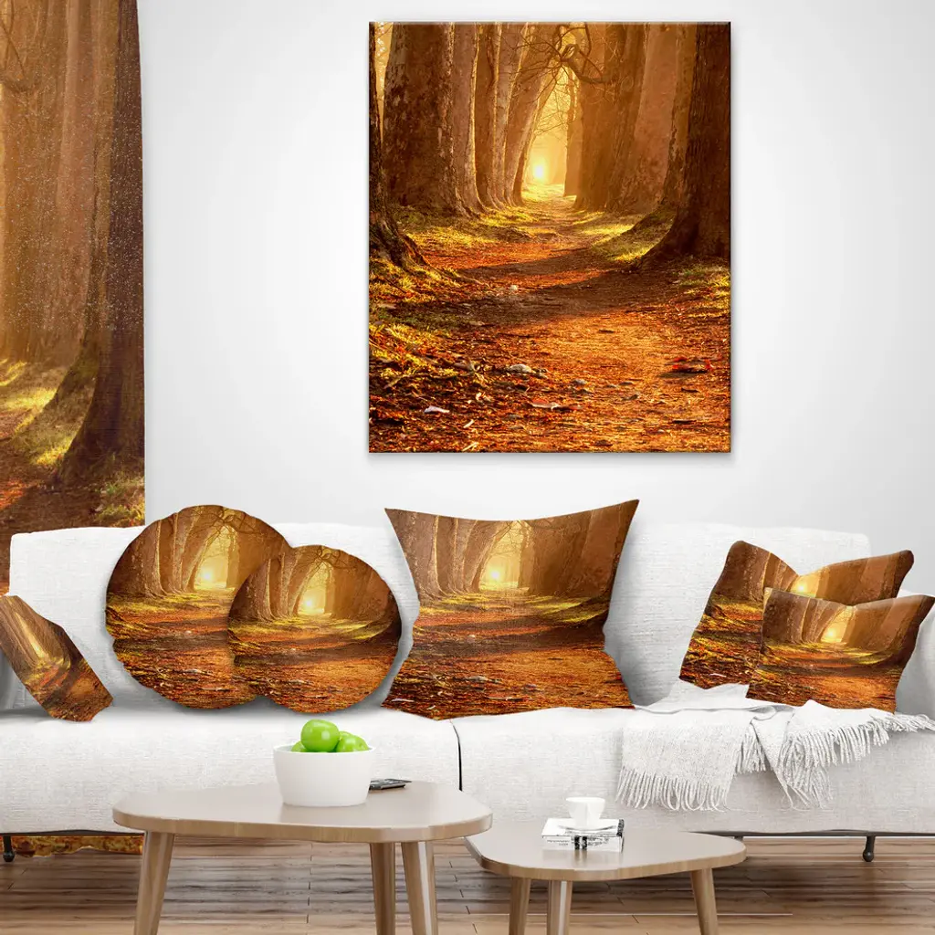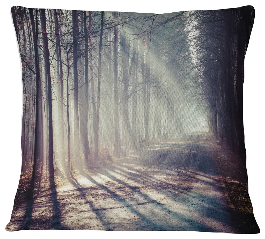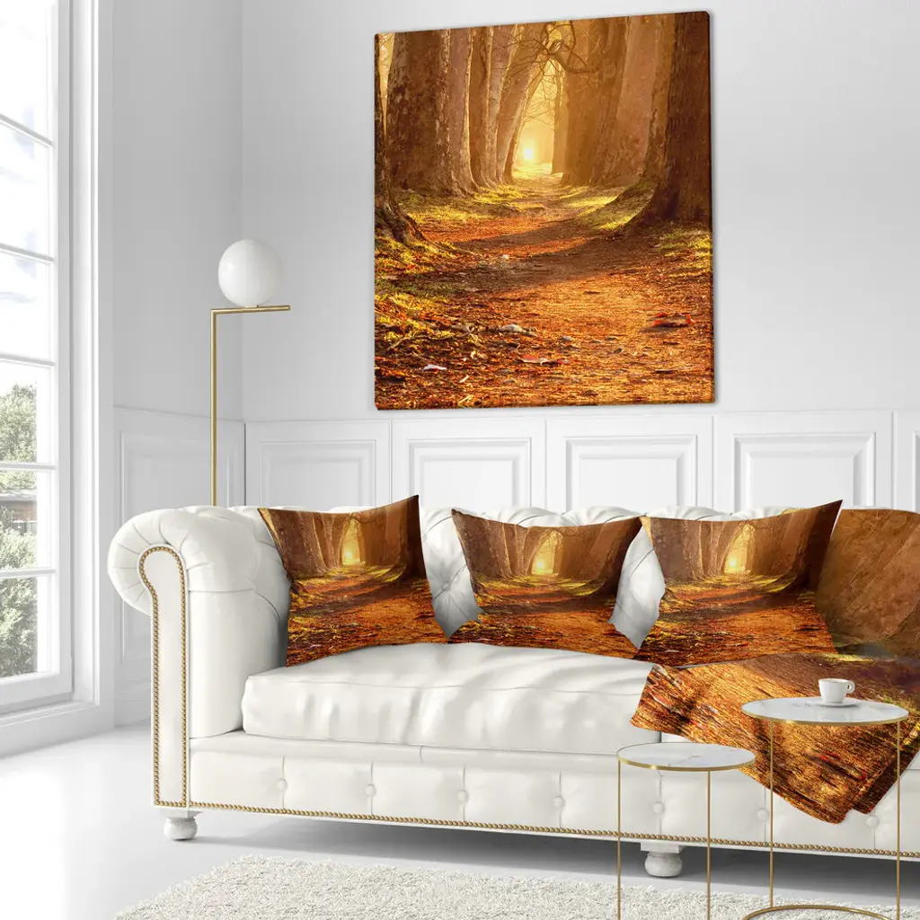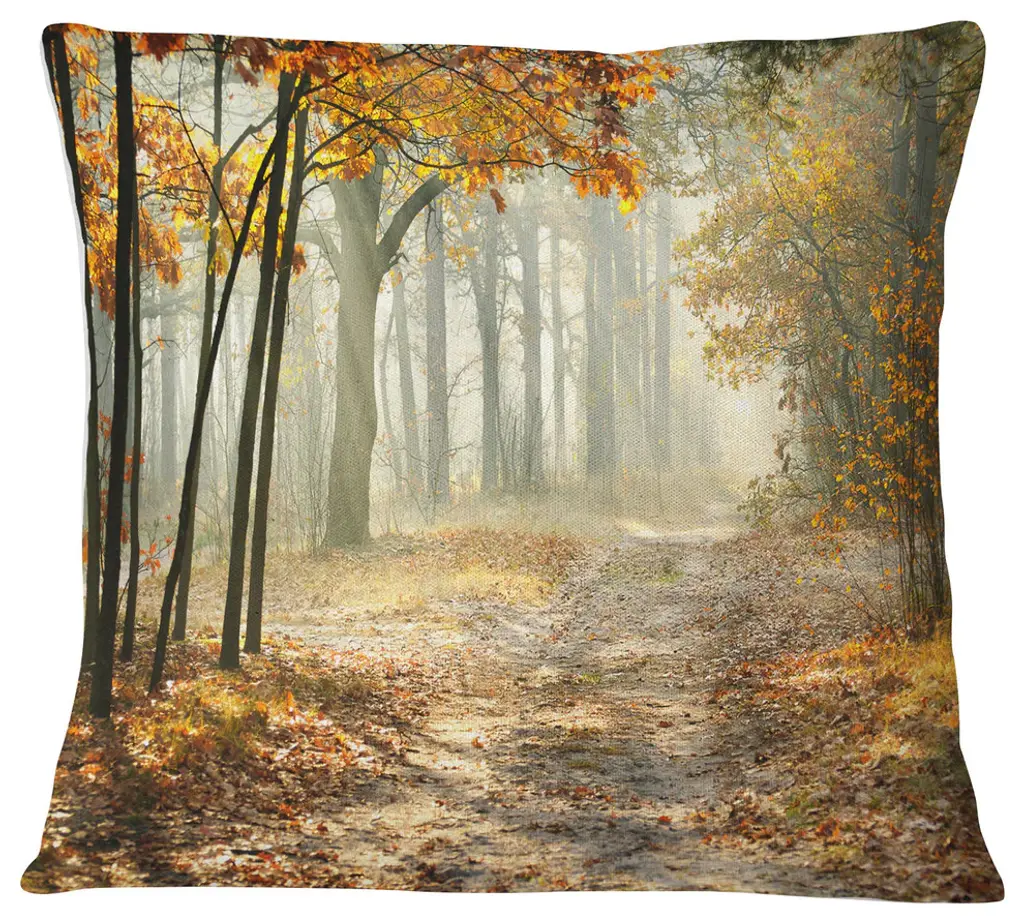 Magic Morning At The Fall Park Landscape Photography Throw Pillow, 16"x16"