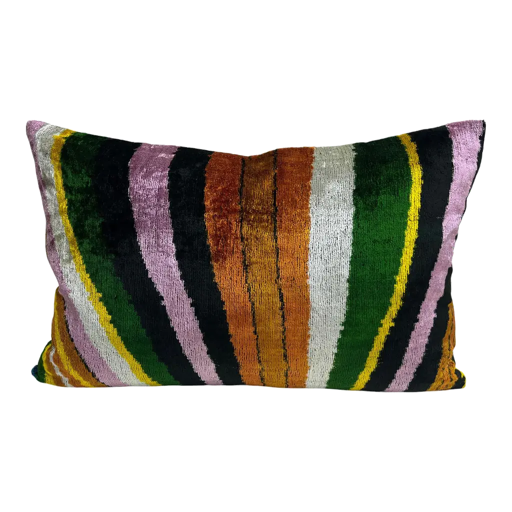 Girard drew inspiration from his travels to Mexico and India, as well as from his fascination with traditional folk art. Alexander Girard designed this textile during his tenure as founding director of the Herman Miller Textile Division, from 1952 to 1973. Millerstripe reflects these cultural influences, utilizing vivid color and simple geometry. In order to remain true to Girard's vision, the Maharam Design Studio developed forty individual yarn colors, providing an exact match with the original warp stripe, while utilizing modern dyeing techniques. The designer and manufacturer have work represented in the MoMA collection. Made in the USA. Dry-clean only. 17h x 17w x 5"d.