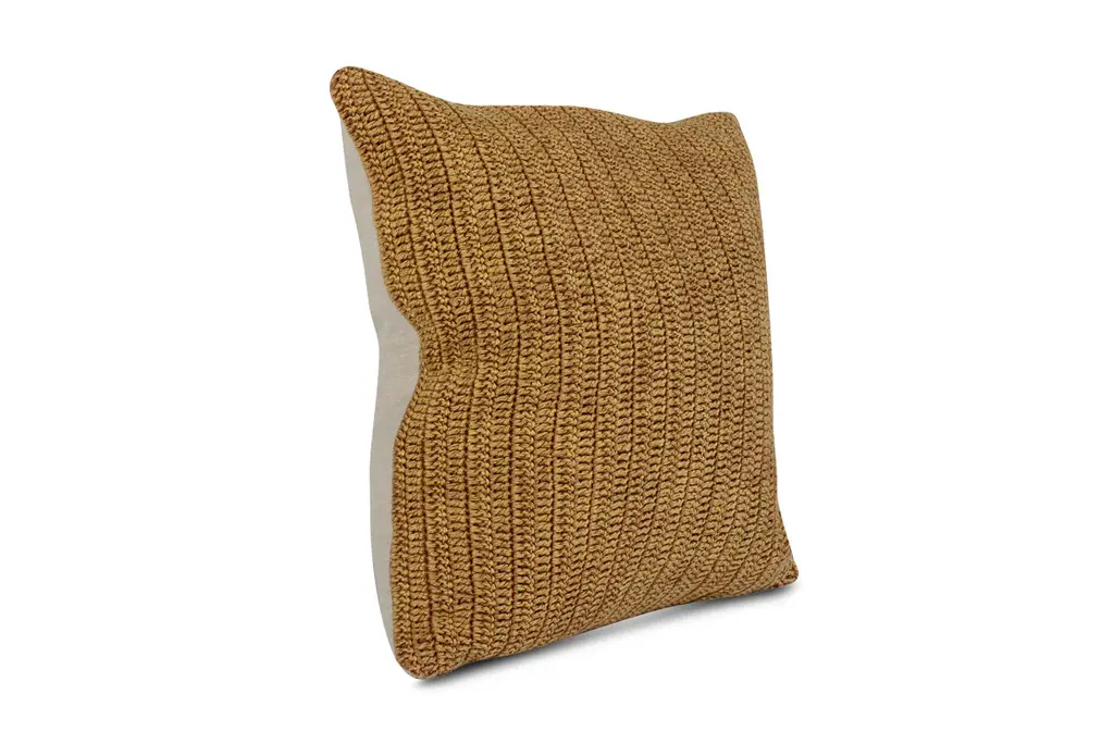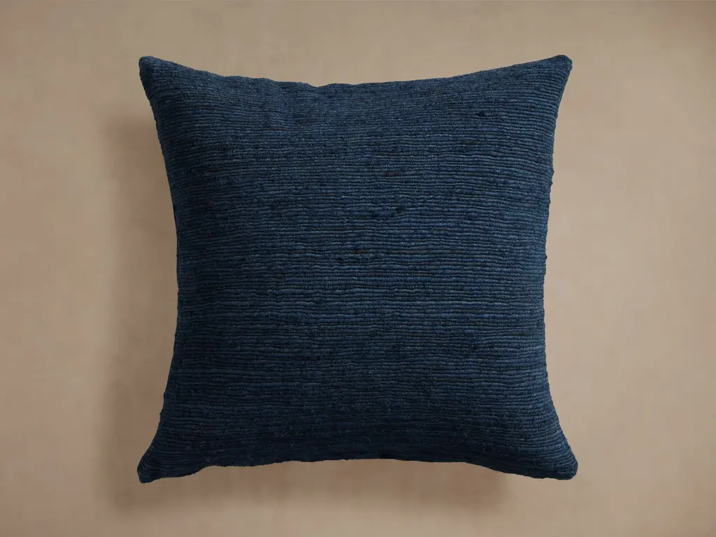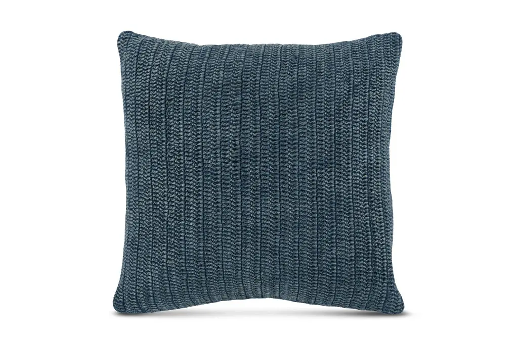 The Mallory Pillow is a casual hand-knitted 100% Belgian flax linen accent piece with multi-dimensional texture. It is dyed and stonewashed for softness and a natural distressed look. Inside you'll find a feather and down insert.