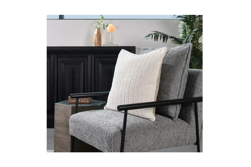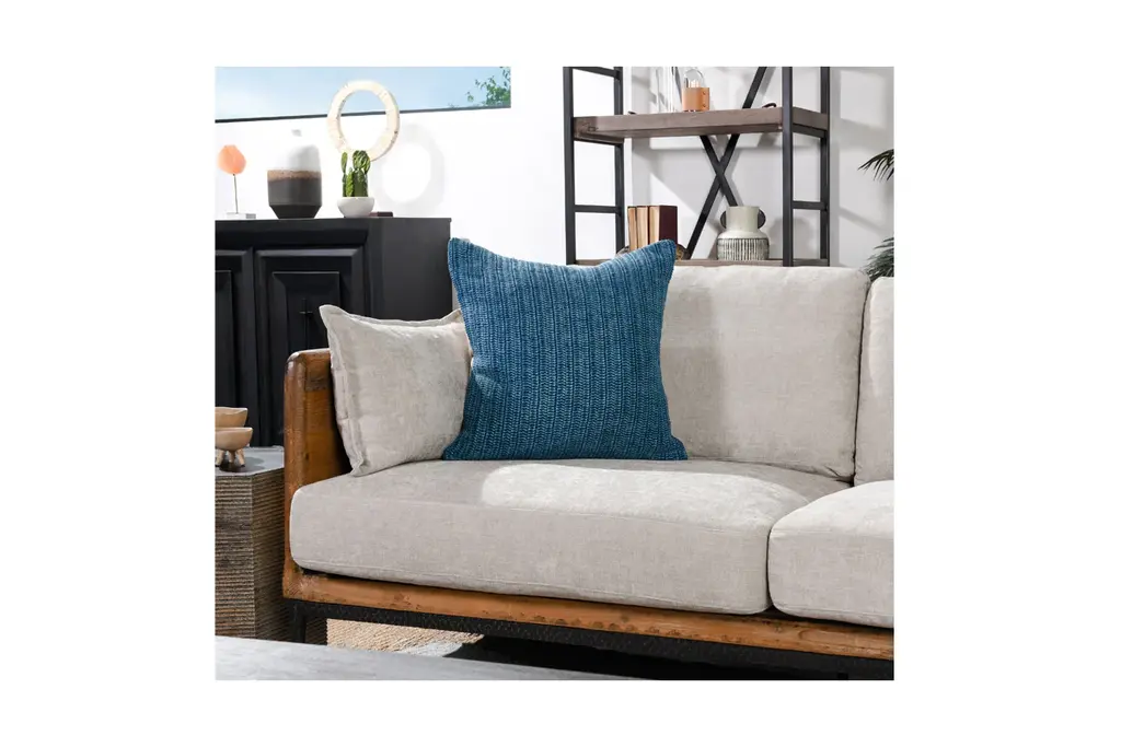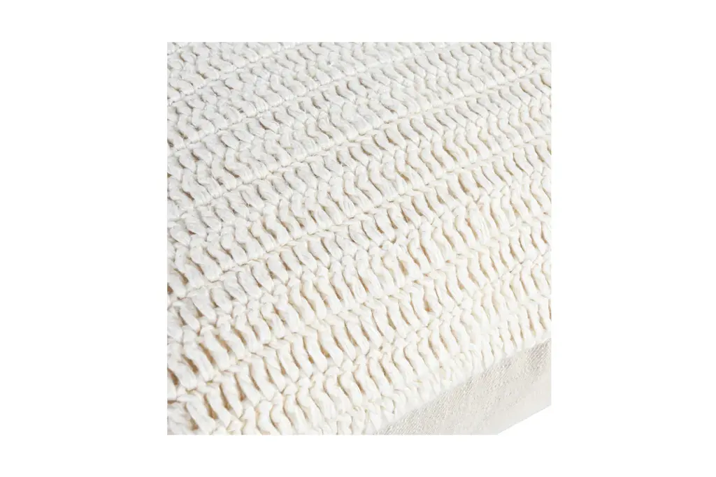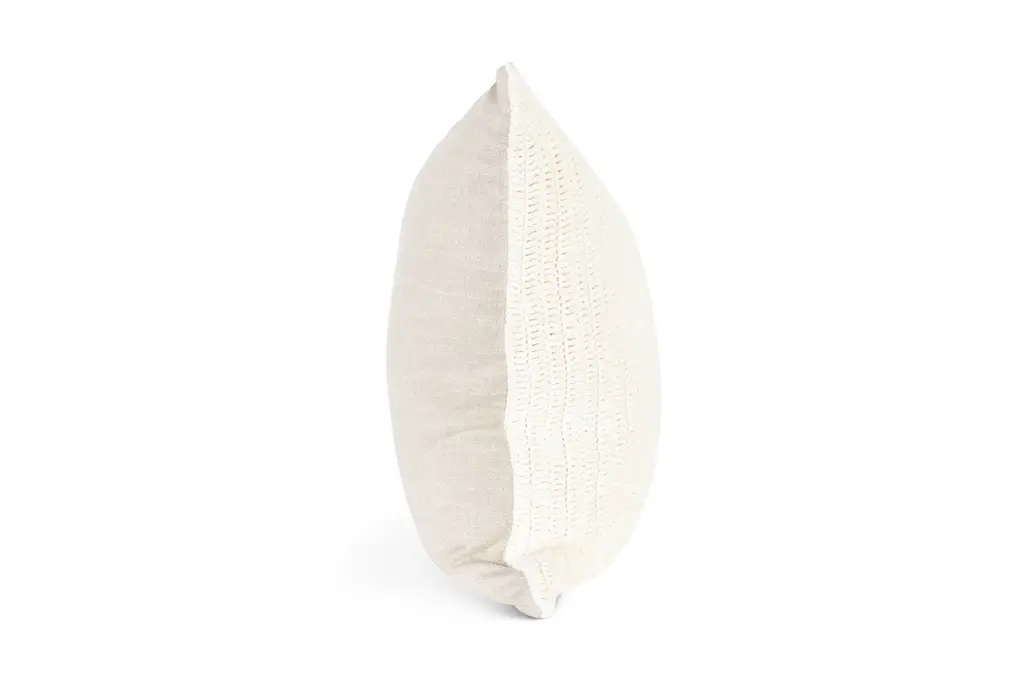 The Mallory Pillow is a casual hand-knitted 100% Belgian flax linen accent piece with multi-dimensional texture. It is dyed and stonewashed for softness and a natural distressed look. Inside you'll find a feather and down insert.