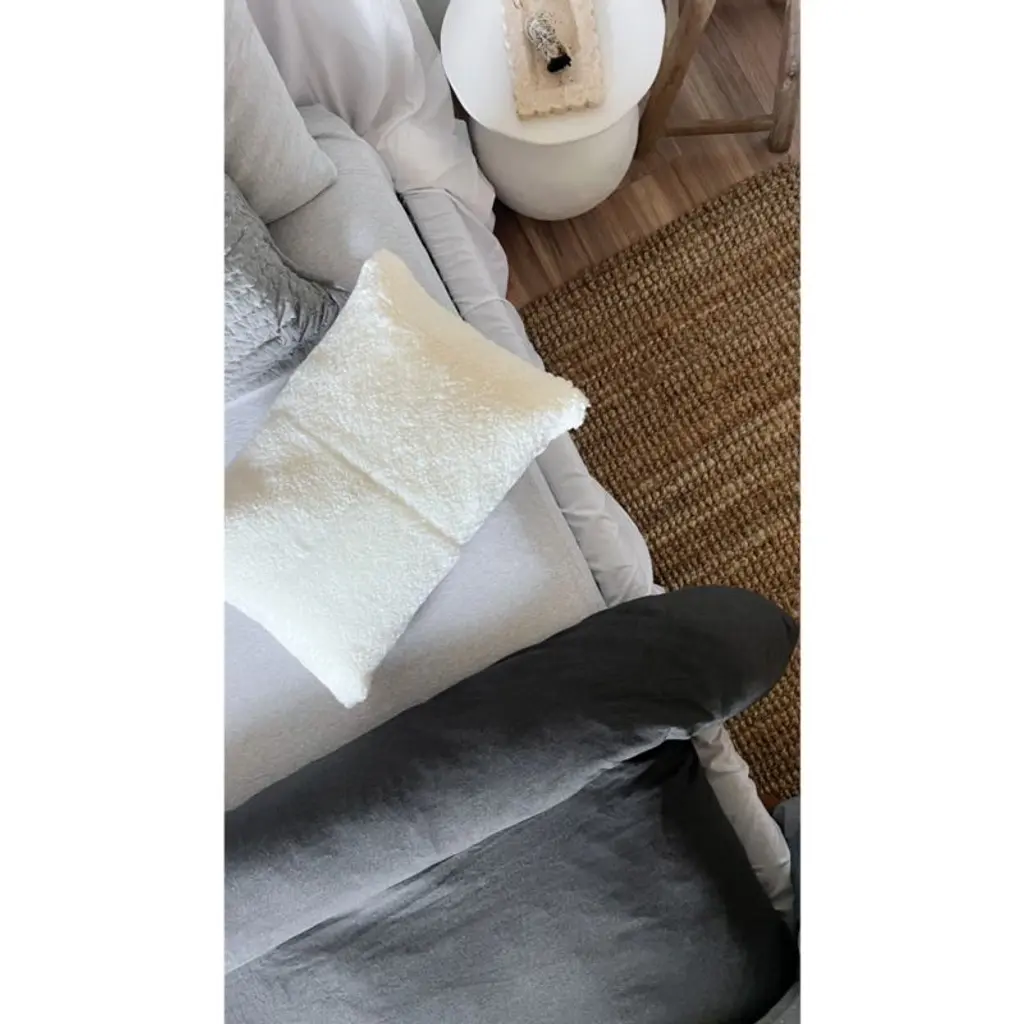 Totally luxe and irresistible to the touch, this pillow indulges in pure sheepskin. The cuddly ivory shearling layers softness and extravagance onto your sofa, armchair or bed-we especially love Malmo on a bed made up entirely in off-white. Backed in linen, our exclusive lumbar throw pillow includes your choice of a plush feather or lofty down-alternative insert.