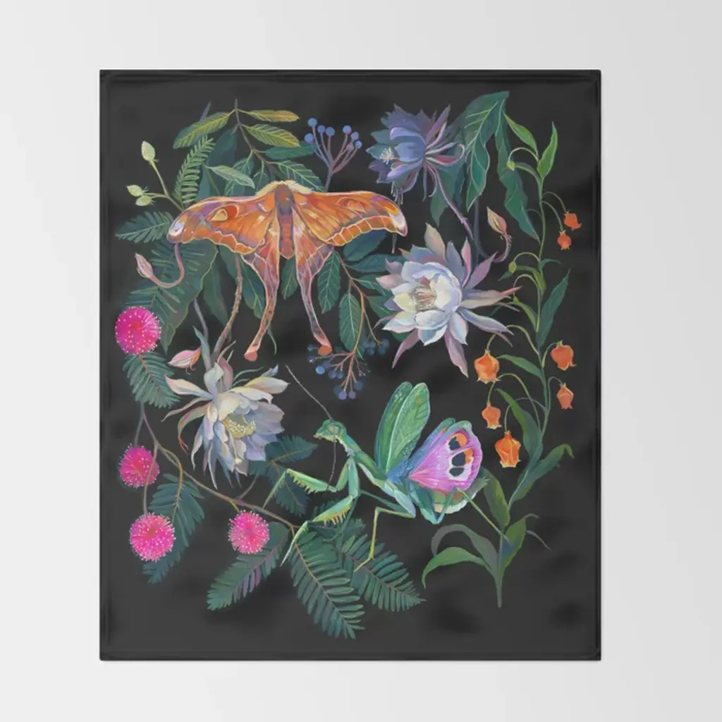 Mantis And Moth Cactus Flower Throw Blanket