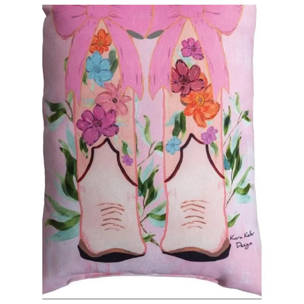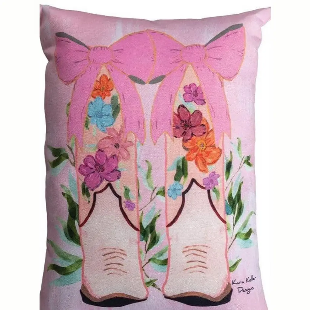 Manual Woodworkers And Weavers Boots With Bows Outdoor Pillow – Pink Floral Climaweave Cushion With Weather-resistant Fabric