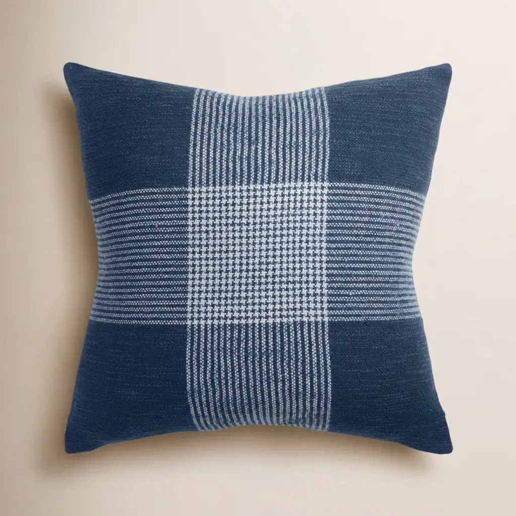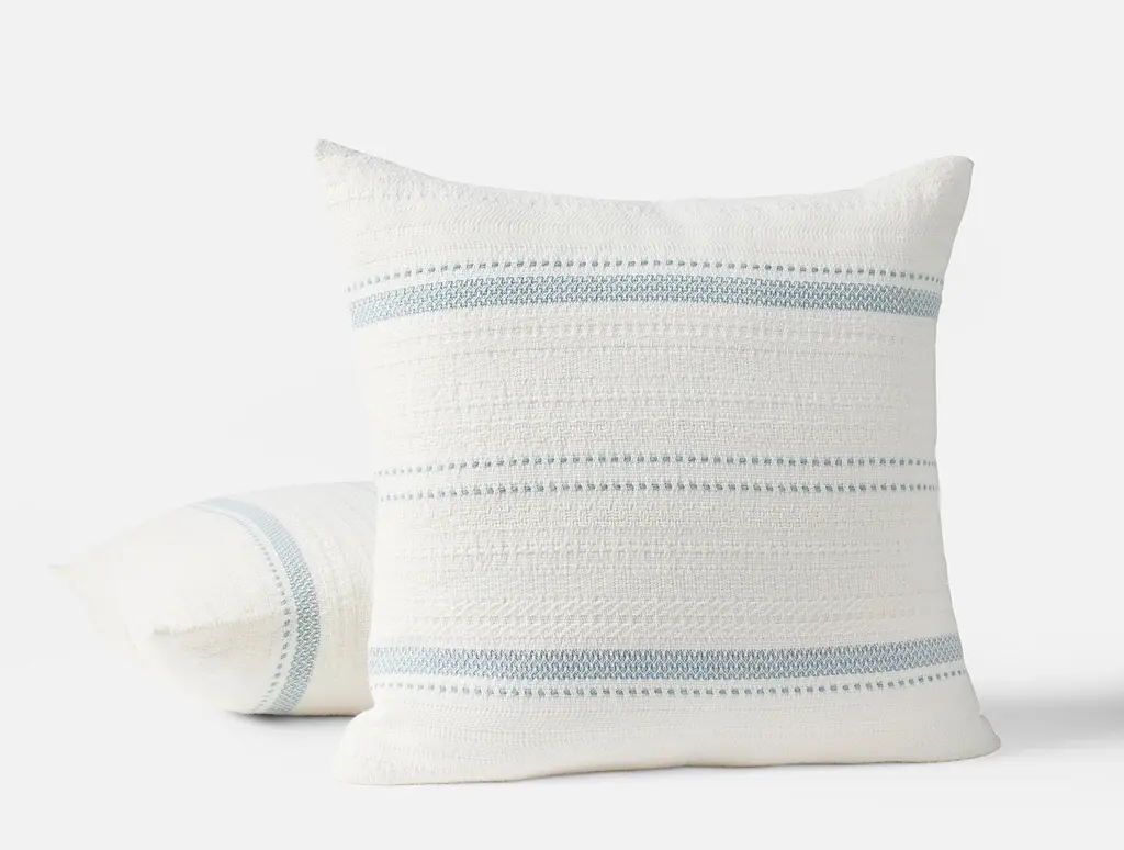 Texture meets pattern with stripes in shades of and thick, white, subtly textured fabric for a luxurious version of a classic composition.