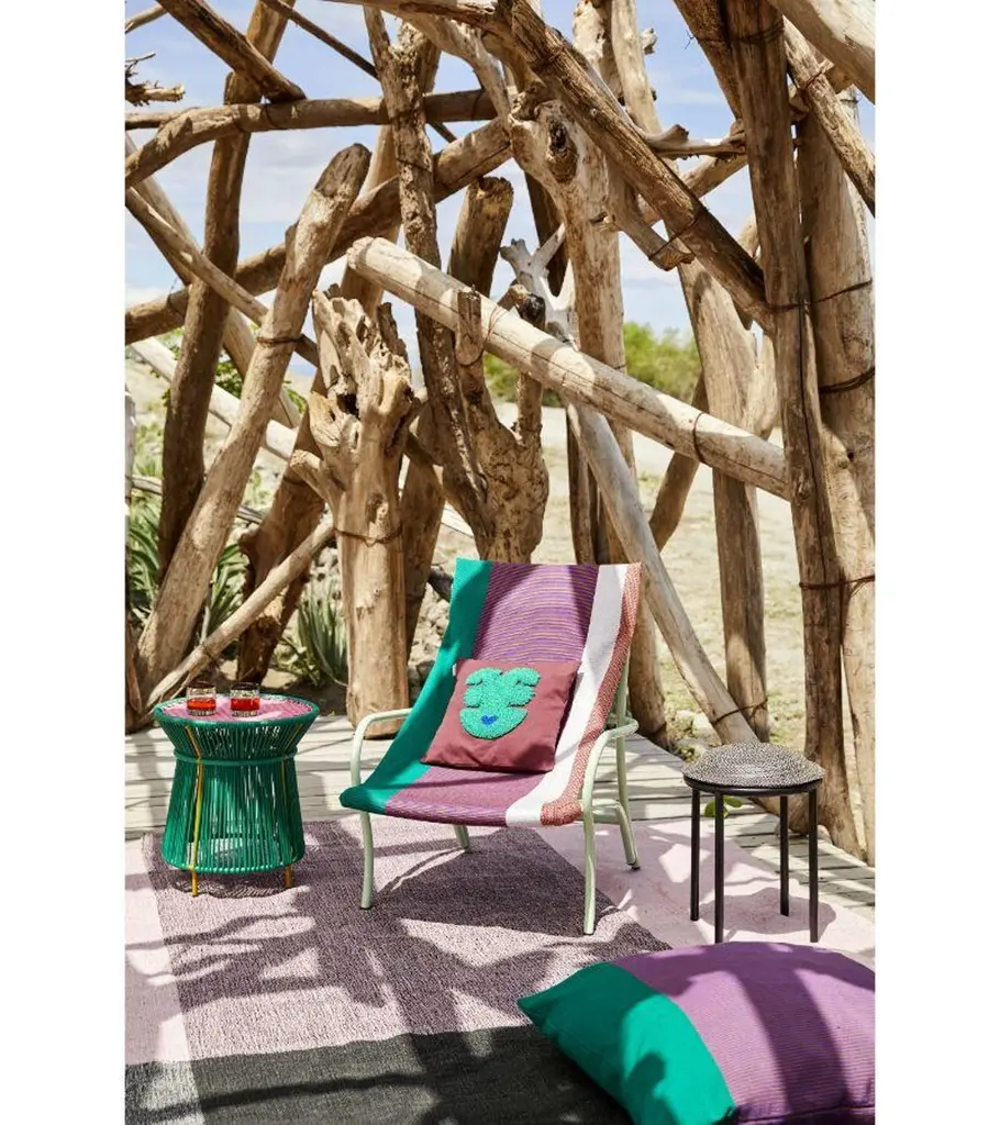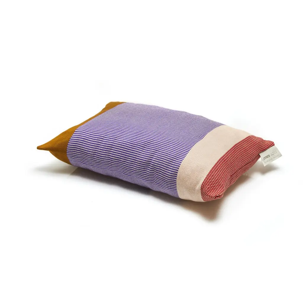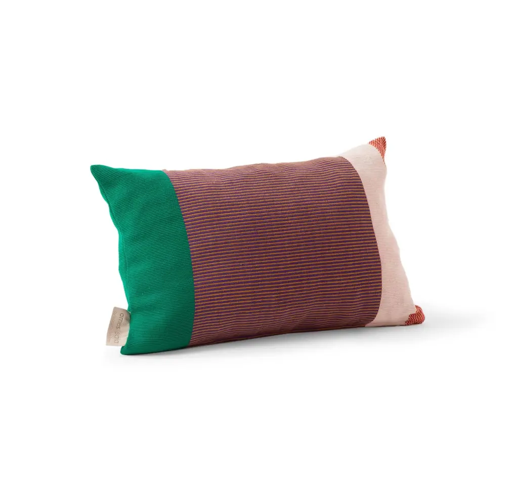 Maraca pillow 2 by Sebastian HerknerMaterials: 100% cotton. Technique: Hand-woven in Colombia. Dimensions: W 60 x H 40 cm Available in colors: green / purple / red, orange / gold / red, gold / purple / red. With their strong color-blocking, the Maraca Cushions are an ode to the rich cultural heritage of the Bolívar region in Northern Colombia. In this area, the old manufacturing techniques and methods are still cherished and taught. Among these is the art of building the famous maracas rattles, which the gaiteros use to play ancient rhythms. The cushion covers are made of 100% hand-woven cotton. The cotton yarns are dyed exclusively with natural dyes and then finished by hand. To bind the bright colors, the artesanos use salt and almidon, a natural starch. Just the preparation of all the materials takes three days, while the production of each cushion takes two days. German designer Sebastian Herkner is a long-term collaborator of Ames and has visited Colombia multiple times to experience the country’s cities, nature and people first hand. He also visited many of the ateliers that Ames has partnered with to learn about the unique traditional crafts of Colombia's regions. A sought-after contemporary designer and recipient of many industry awards, he has worked with many international design brands, creating intriguing pieces that showcase his intuition for interesting material, color, and texture combinations.