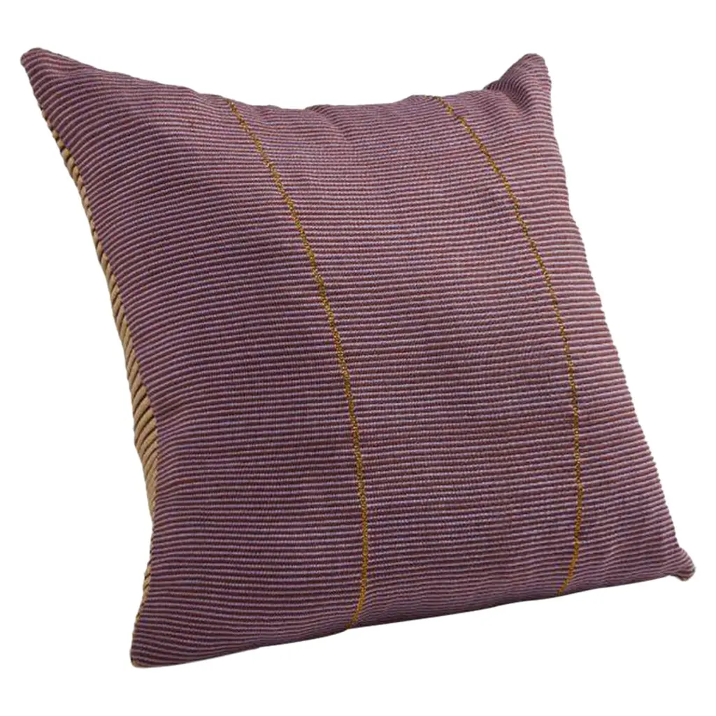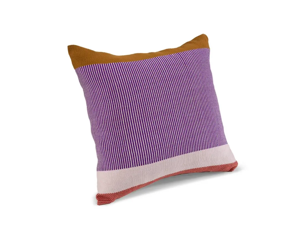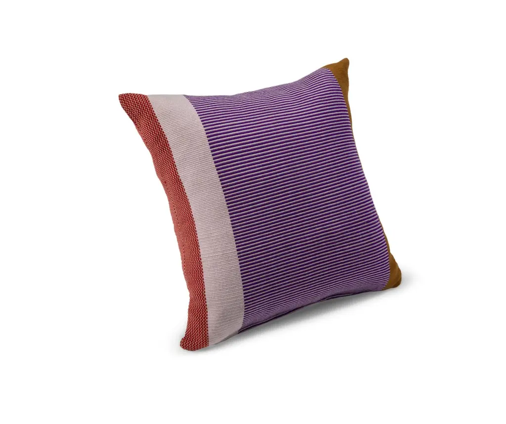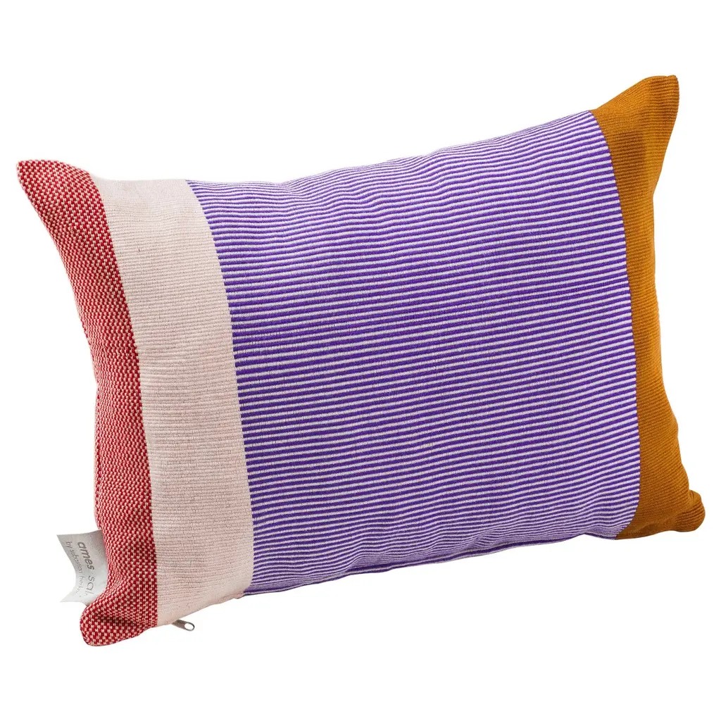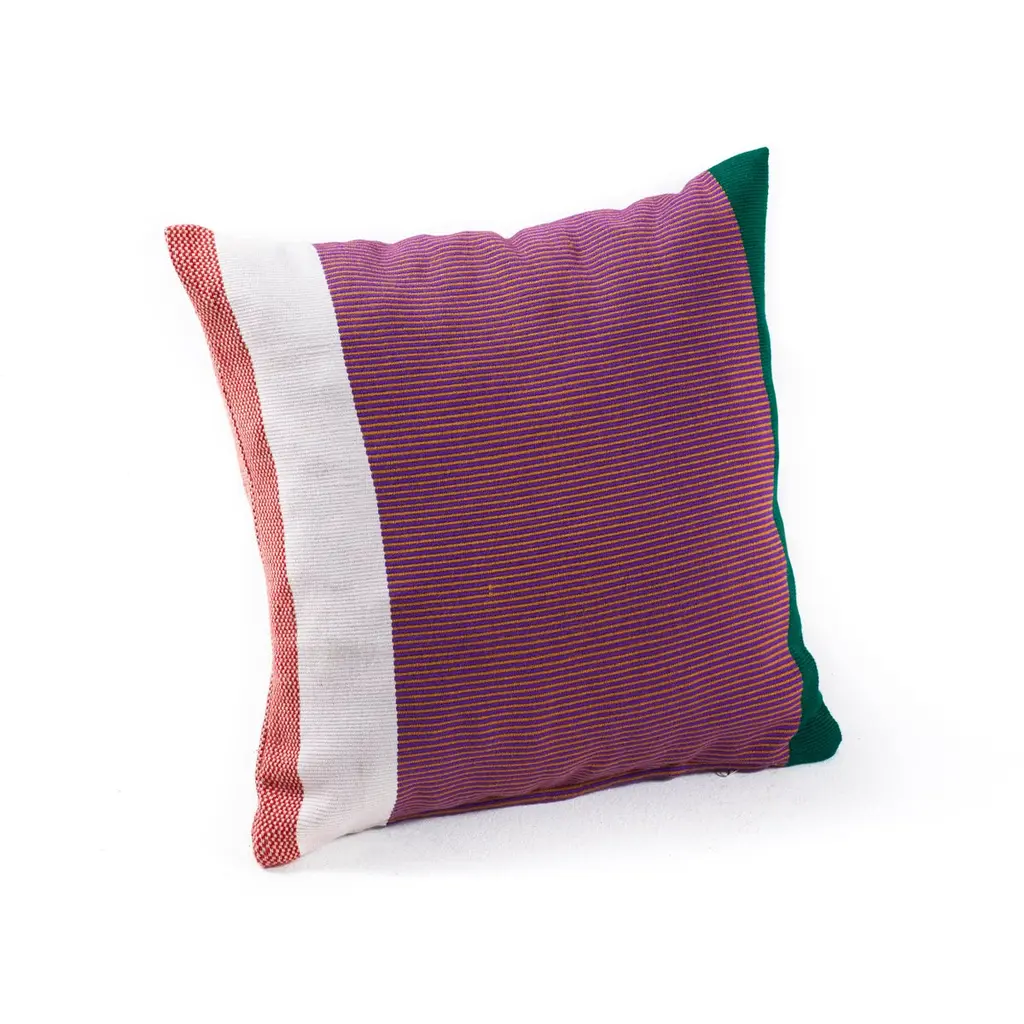 Maraca Pillow 3 by Sebastian HerknerMaterials: 100% Cotton. Technique: Hand-woven in Colombia. Dimensions: W 80 x H 80 cm Available in colors: verde/ purpura/ rojo, naranja/ dorado/ rojo, dorado/ purpura/ rojo.With their strong color-blocking, the Maraca Cushions are an ode to the rich cultural heritage of the Bolívar region in Northern Colombia. In this area, the old manufacturing techniques and methods are still cherished and taught. Among these is the art of building the famous maracas rattles, which the gaiteros use to play ancient rhythms. The cushion covers are made of 100% hand-woven cotton. The cotton yarns are dyed exclusively with natural dyes and then finished by hand. To bind the bright colors, the artesanos use salt and almidon, a natural starch. Just the preparation of all the materials takes three days, while the production of each cushion takes two days. German designer Sebastian Herkner is a long-term collaborator of Ames and has visited Colombia multiple times to experience the country’s cities, nature and people first hand. He also visited many of the ateliers that Ames has partnered with to learn about the unique traditional crafts of Colombia's regions. A sought-after contemporary designer and recipient of many industry awards, he has worked with many international design brands, creating intriguing pieces that showcase his intuition for interesting material, color, and texture combinations.