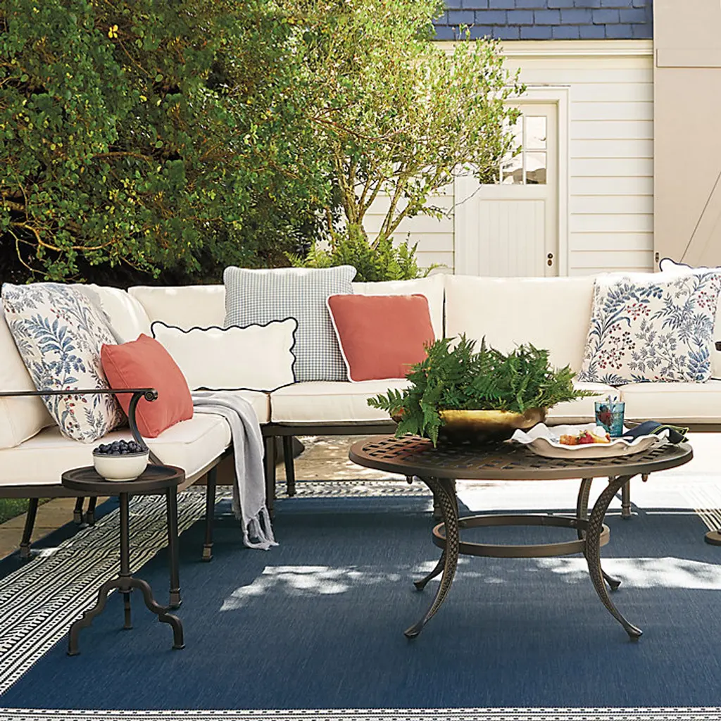 A fresh, family-friendly take on the classic English garden motif, our Marielle Sapphire Sunbrella Performance Fabric is woven of soft, washable Sunbrella acrylic in beautiful shades of blue and persimmon on an ivory ground. Use this ultra-durable, cleanable fabric by yard for drapery, upholstery, and throw pillows in spaces where family, pets, and spills gather, indoors or out.Content: 100% Sunbrella AcrylicRepeat:Non-railroaded fabric with a 20” repeatCare: Spot clean easily with mild soap and water, Bleach cleanable.Width: 54" wideBallard Designs Performance Fabrics by Sunbrella features:Because fabrics are available in whole-yard increments only, please round your yardage up to the next whole number if your project calls for fractions of a yard. To order fabric for Ballard Customer's-Own-Material (COM) items, please refer to the order instructions provided for each product.Ballard offers free fabric swatches. Shipping and Processing fees apply. Ten swatches maximum. We’re sorry, cut fabric is non-returnable.
