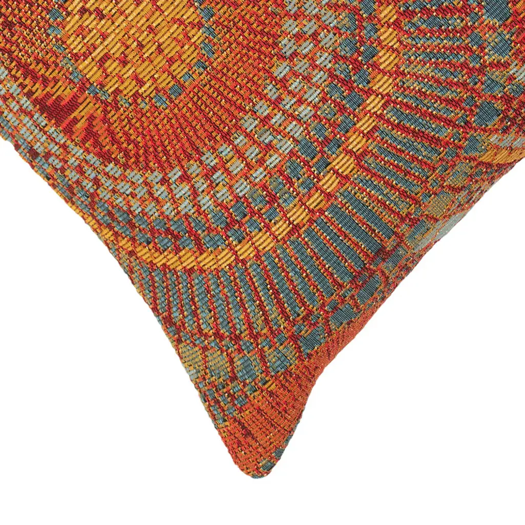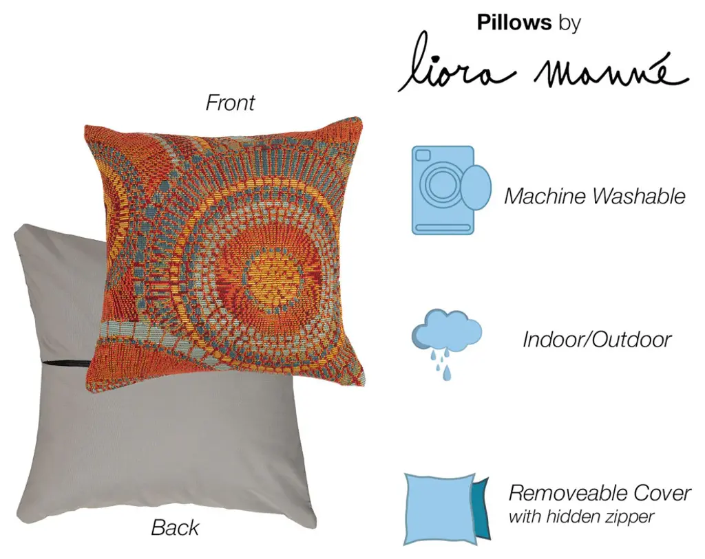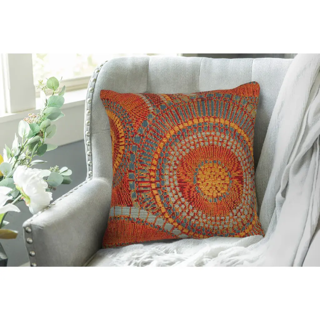 The stunning circles of this sophisticated pattern allows for endless decorating possibilities adding elegance and color to any room in the home, in orange. Masterfully woven of 100% weather-resistant soft polypropylene face which creates the perfect soft touch for this pillow.It is easy-care and has a removeable cover with a durable zipper closure. Crafted on a traditional loom, then stitched to a durable polyester backing, this collection of pillows has a worldly aesthetic. The textiles combine interesting tones and patterns, bringing a chic ambiance to your space.Features:
