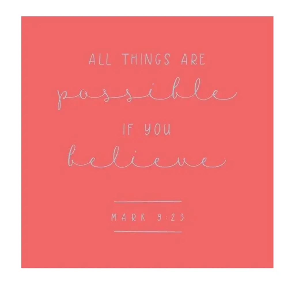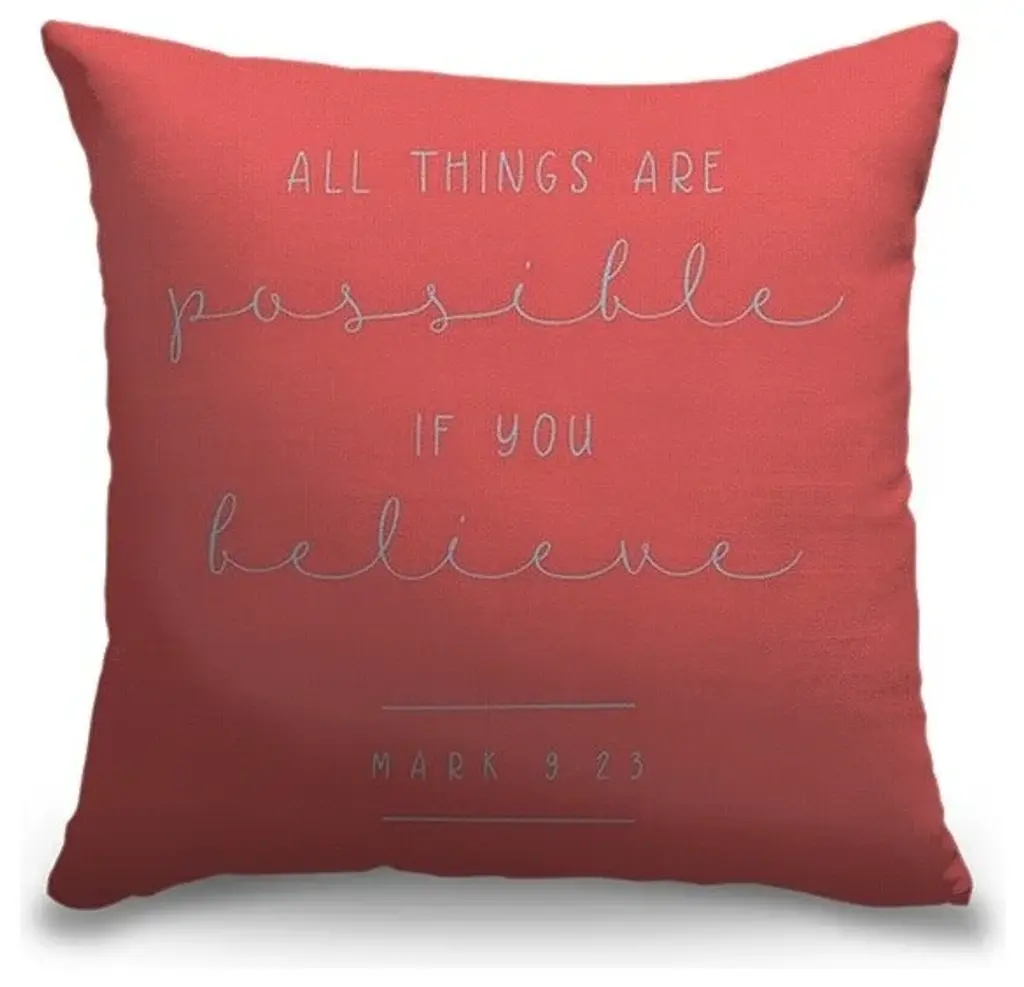 "Mark 9:23 - Scripture Art In Teal And Coral" Outdoor Pillow 16"x16"