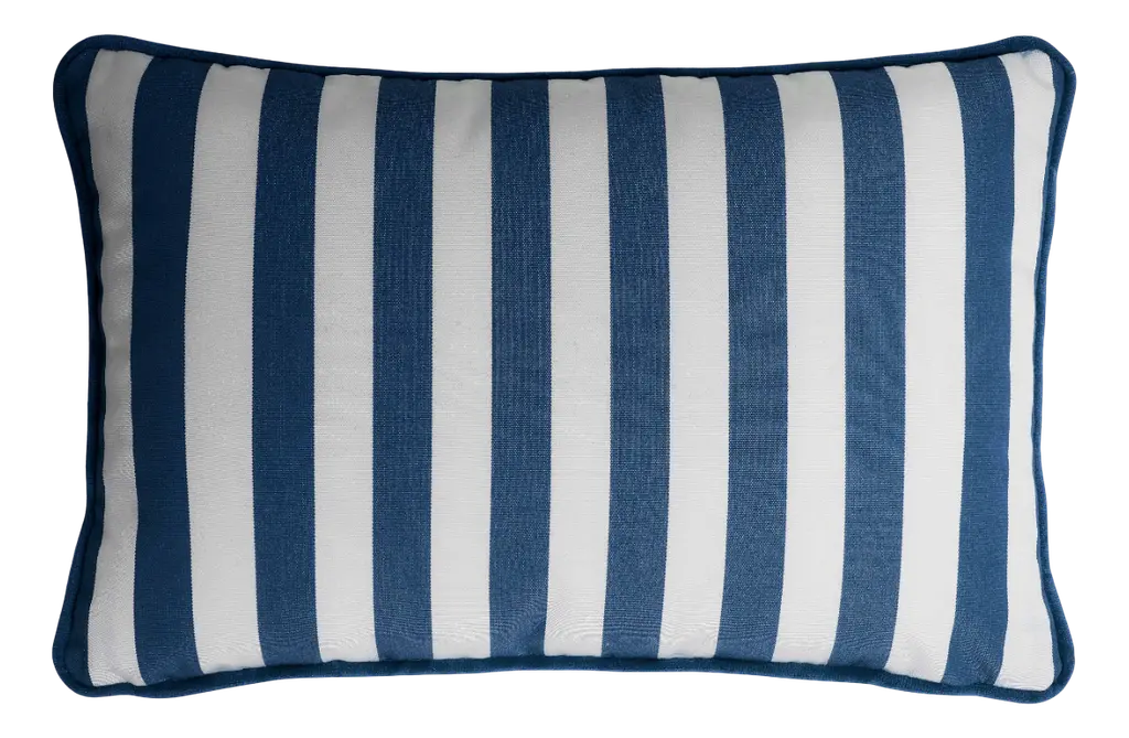 This pillow features Markie Stripe by Mark D. Sikes with a self welt finish. A fresh take on a traditional awning stripe, this versatile pattern by Mark D. Sikes has perfect proportions and classic good looks. Pillow includes a feather/down fill insert and hidden zipper closure.