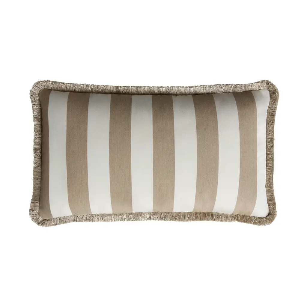 This pillow features Markie Stripe by Mark D. Sikes with a self welt finish. A fresh take on a traditional awning stripe, this versatile pattern by Mark D. Sikes has perfect proportions and classic good looks. Pillow includes a feather/down fill insert and hidden zipper closure.
