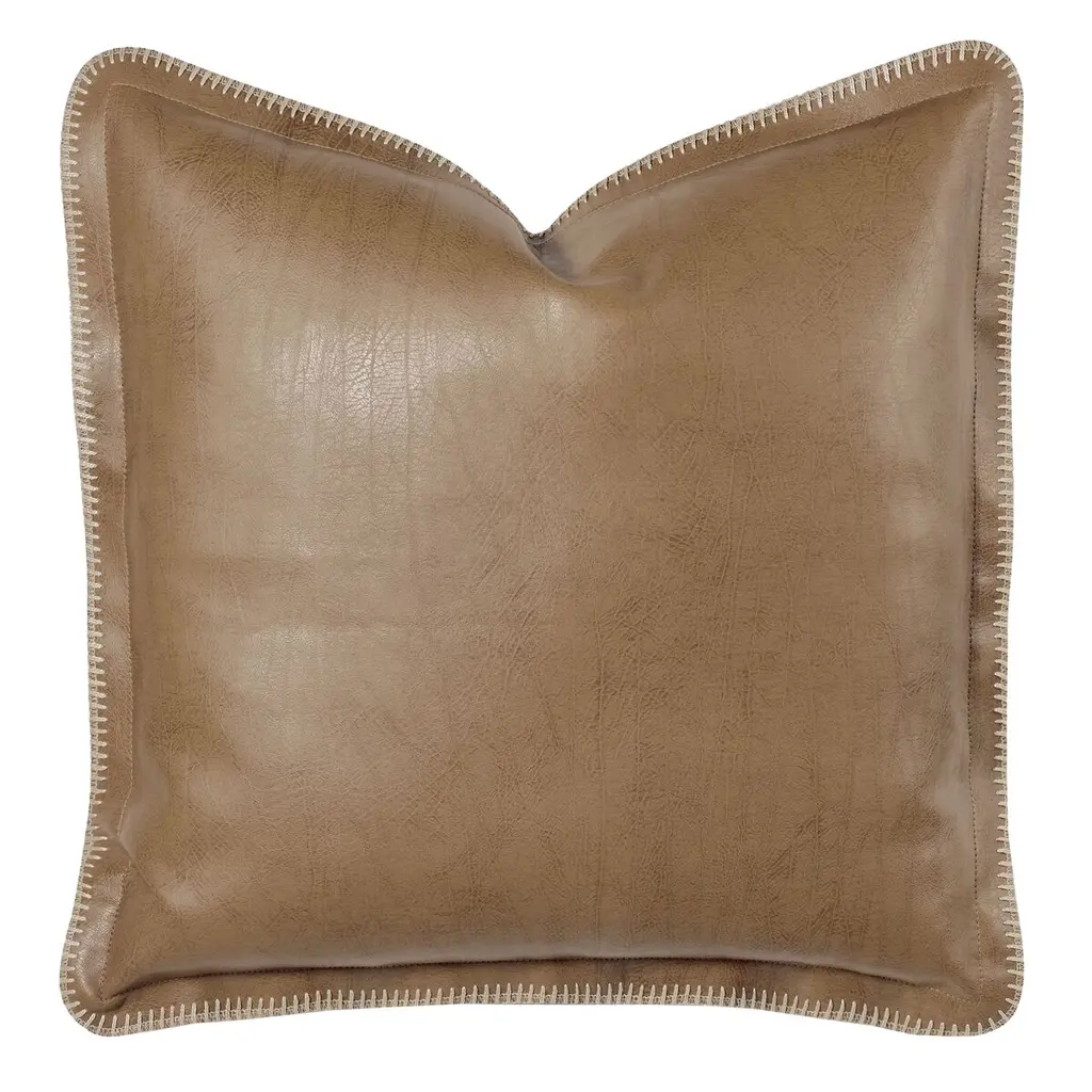 Exclusive to One Kings Lane: This pillow offers rich color and luxurious texture on both sides. The front is made of English bullhide leather, which is thicker and more durable than most other leathers; the reverse is plush velvet. The feather fill ensures sumptuous loftiness. Zipper closure.