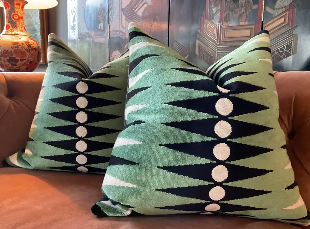 Mary Mcdonald For Schumacher's " Backgammon Cut Velvet" In Green Pillows- A 22' Pair