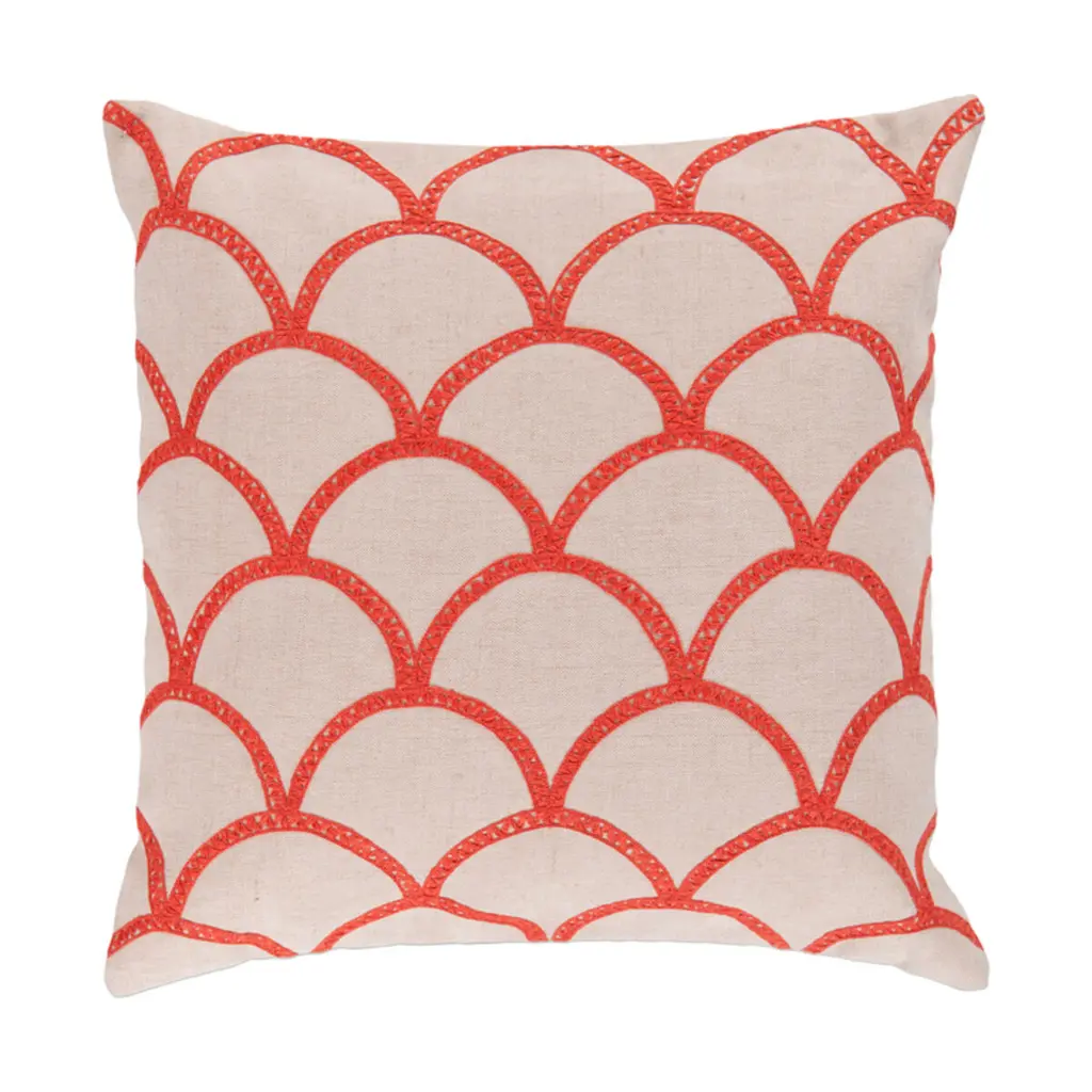 Update your space with this perfect pillow! The scintillating scale design paired with the radiant red coloring beams against the tan backdrop, creating a portrait of charm in any room. This pillow contains a zipper closure and provides a reliable and affordable solution to updating your home’s decor. Genuinely faultless in aspects of construction and style, this piece embodies impeccable artistry while maintaining principles of affordability and durable design, making it the ideal accent for your decor.