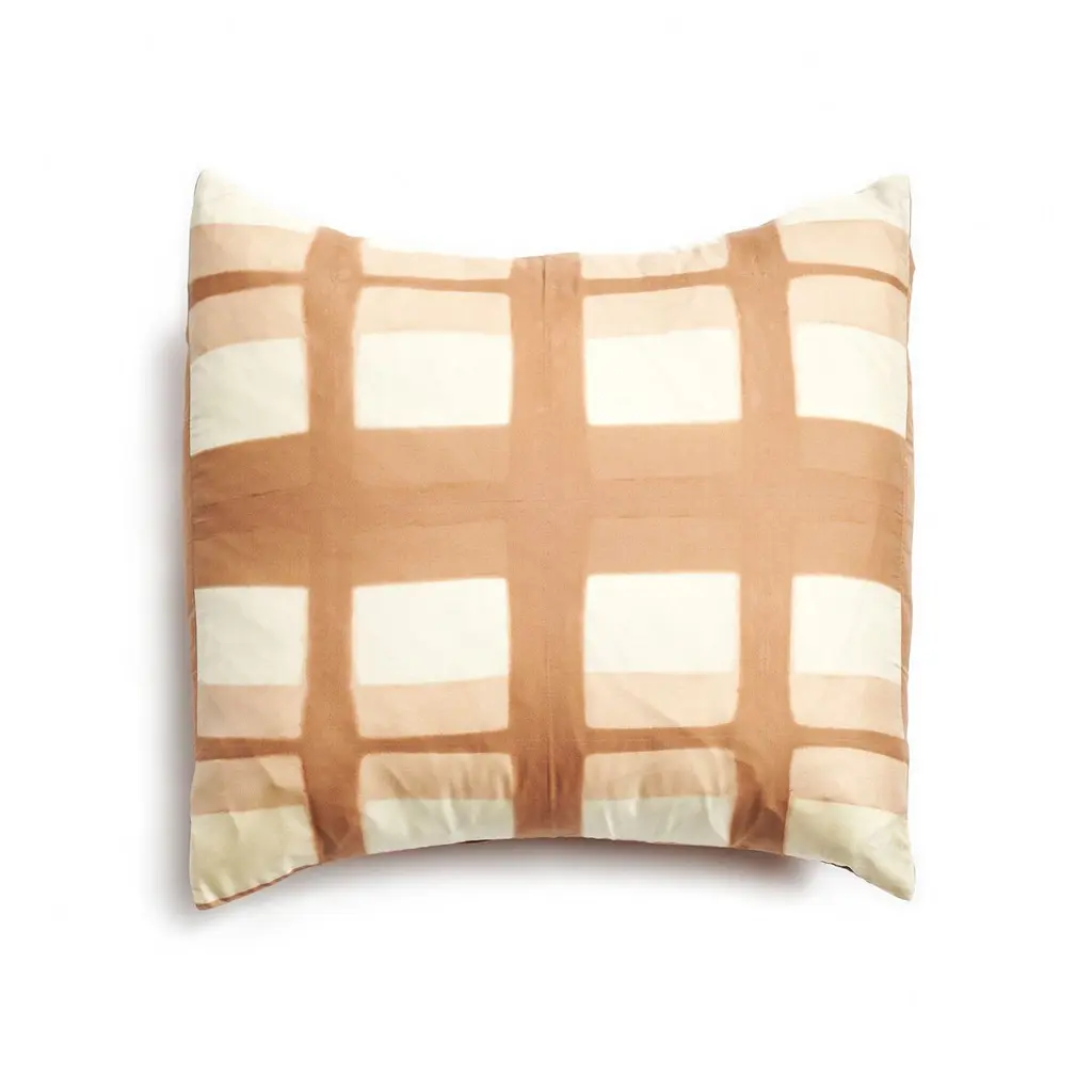Melo gold silk pillow is luxurious and exquisite with its classic block shibori print. As this pillow is 100% handmade from start to finish, each piece is unique and will have a slight variation which is the beauty of the handmade process.In this pillow we have used high quality soft 60 gms mulberry silk that enhances this design. Premium quality of natural dyes made in small batch by expert dyers is used by master shibori artisans in India. This also ensures longevity and makes our pillows sustainable and timeless for luxurious interior spaces.Melo gold silk pillow beautifully combines heritage value and high quality craftsmanship supporting artisanal clusters ethically.Size: 20 inches x 20 inches square pillow (High quality down filler included in the price )Material: 100% 60 gms mulberry silk.Color: Front is shades of gold, cream and white. Back of pillow is dyed solid gold cream.Origin: Ethically crafted by master artisans in IndiaWash care: Hand wash with mild detergent and cold water only, hang dry, avoid direct sunlight.What Makes Your Purchase Sustainable ?100% natural dyes sourced locally. Support ethical employment of women artisans and small artisan clusters. 100% handmade manufacturing process by artisans.Use only 100% natural + biodegradable responsibly sourced materials.Small batch production ensures higher quality & less wastage.