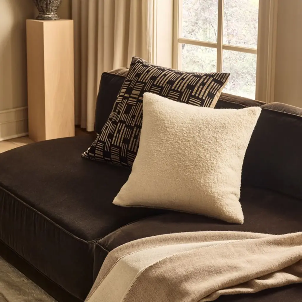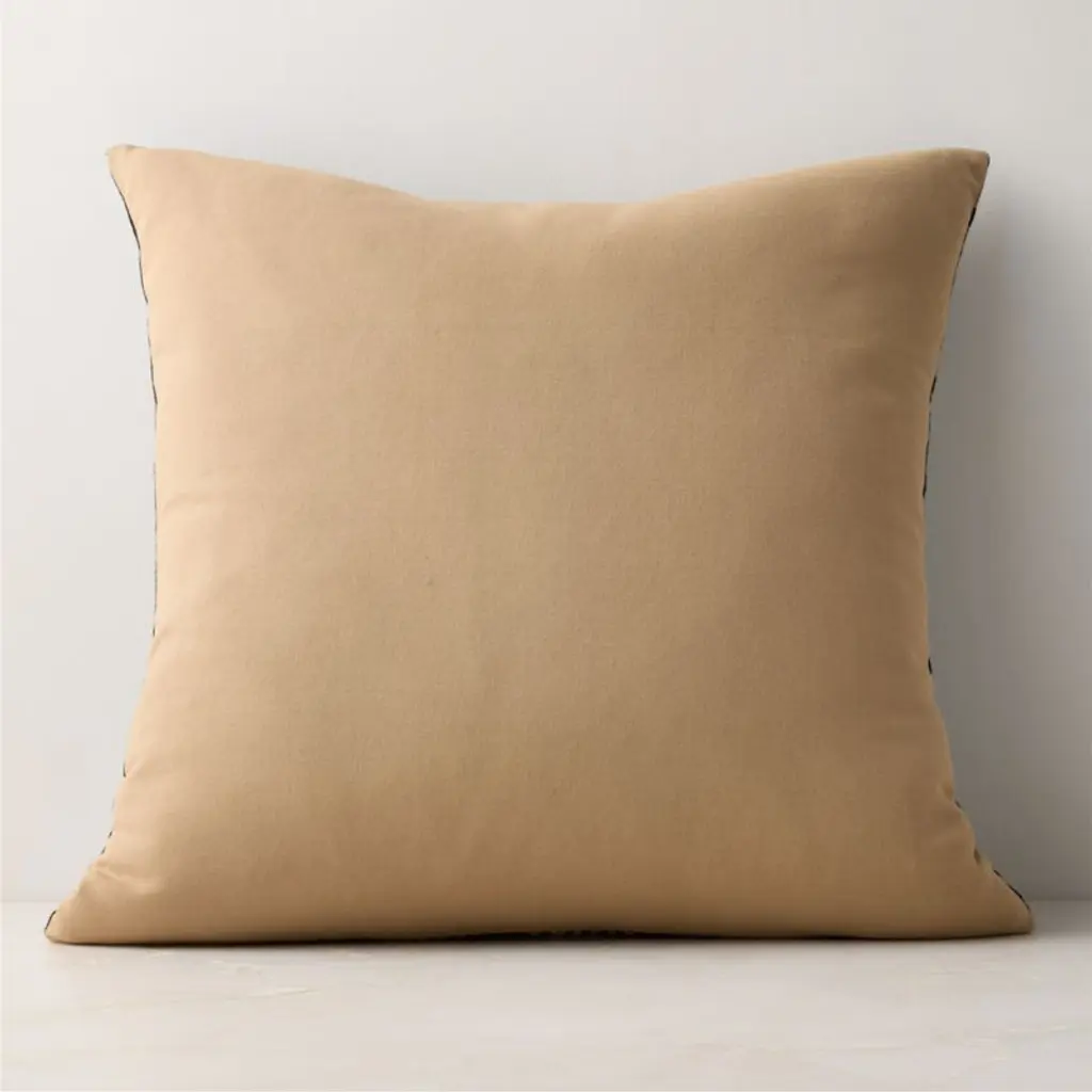 Melrose Black With Sand Woven Jacquard Wool And Silk Throw Pillow With Feather-down Insert 23"x23"