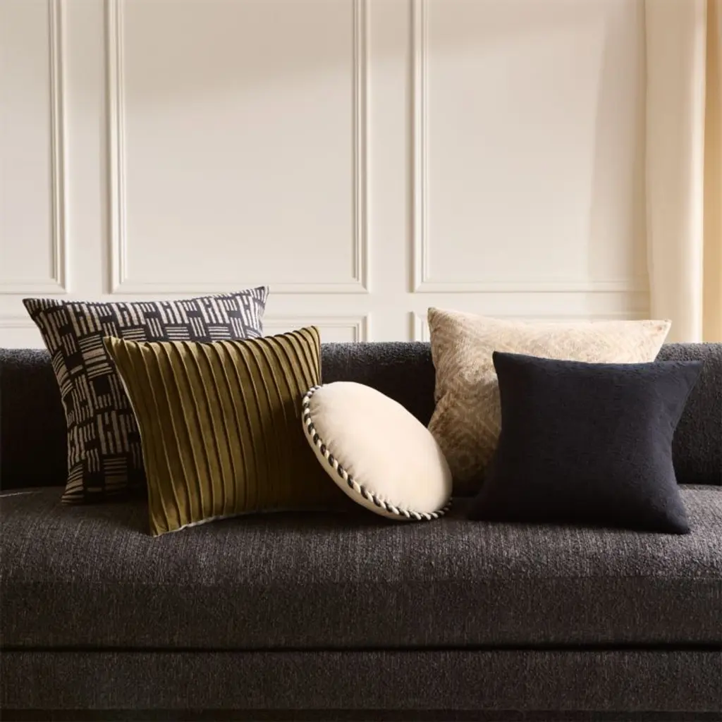 Designed by Evelyn Ackerman, throw pillow echoes her and her husband Jerome's influence on California midcentury modernism while still feeling fresh today. Woven of luxuriously soft wool and tussar silk fibers, it features a solid natural cotton back and a concealed zipper. CB2 pillows include a pillow insert in your choice of feather down or down alternative. CB2 exclusive.Detroit natives Evelyn and Jerome Ackerman founded ERA Industries in 1956. For 50 years, the Los Angeles-based couple played a central role in shaping the California midcentury modern movement. The Ackermans' first woven tapestry was featured on the cover of the Los Angeles Times Home Magazine in 1957. Presented in collaboration with Ackerman Modern, the pieces in this collection recreate the couple's iconic midcentury designs using original drawings and archival photographs.