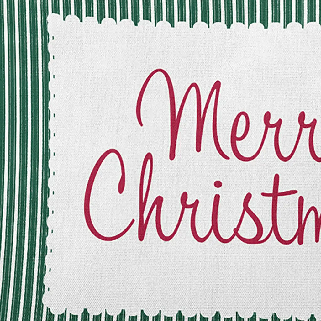 Merry Christmas Ticking Indoor/outdoor Throw Pillow, Forest Green, 20"x20"