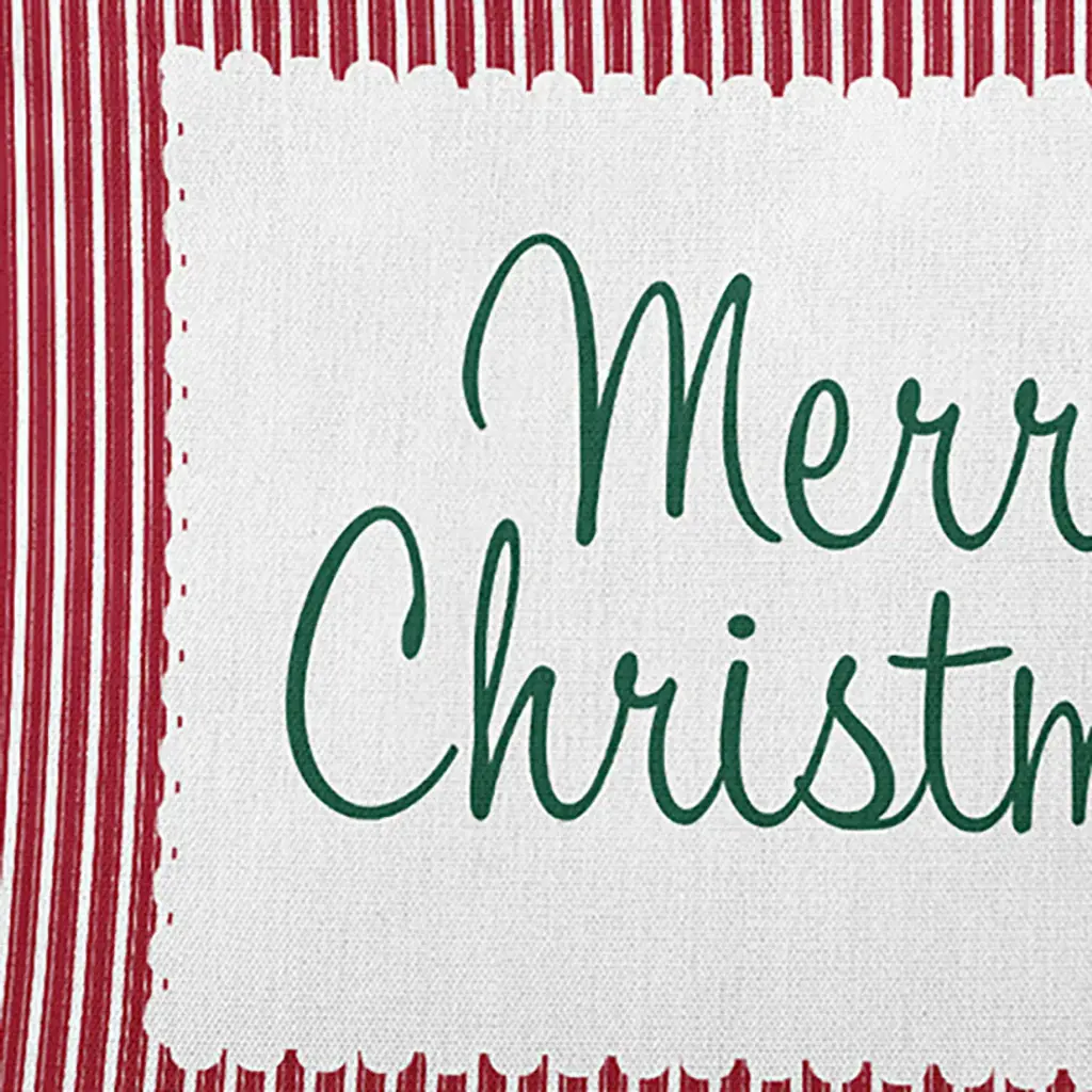 Styling your home for the holidays has never been so easy than with a Merry Christmas Ticking Pillow from our Holiday Cheer Collection. This indoor/outdoor pillow will add style to your porch, deck or patio! This decorative pillow is printed on both sides and crafted with a soft, durable polyester exterior, and filled with down alternative for a crisp look and a comfortable sitting experience. The fabric is resistant to weather, mold, and mildew so you can accentuate your indoor or outdoor decor. It is sewn closed with a knife edge and can be easily spot cleaned or dry cleaned. You''re bound to adore the holiday atmosphere brought to your home with these stunning designs to make your home merry and bright.
