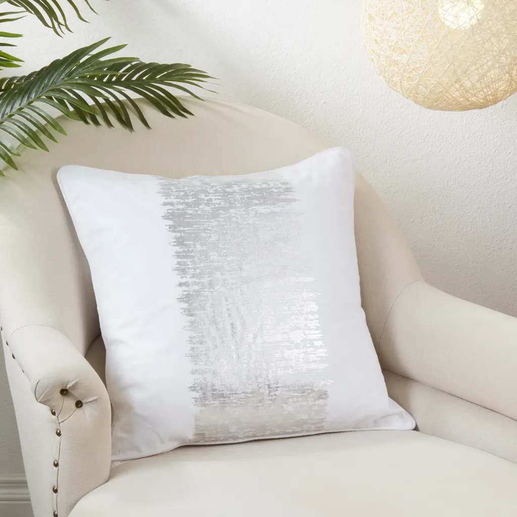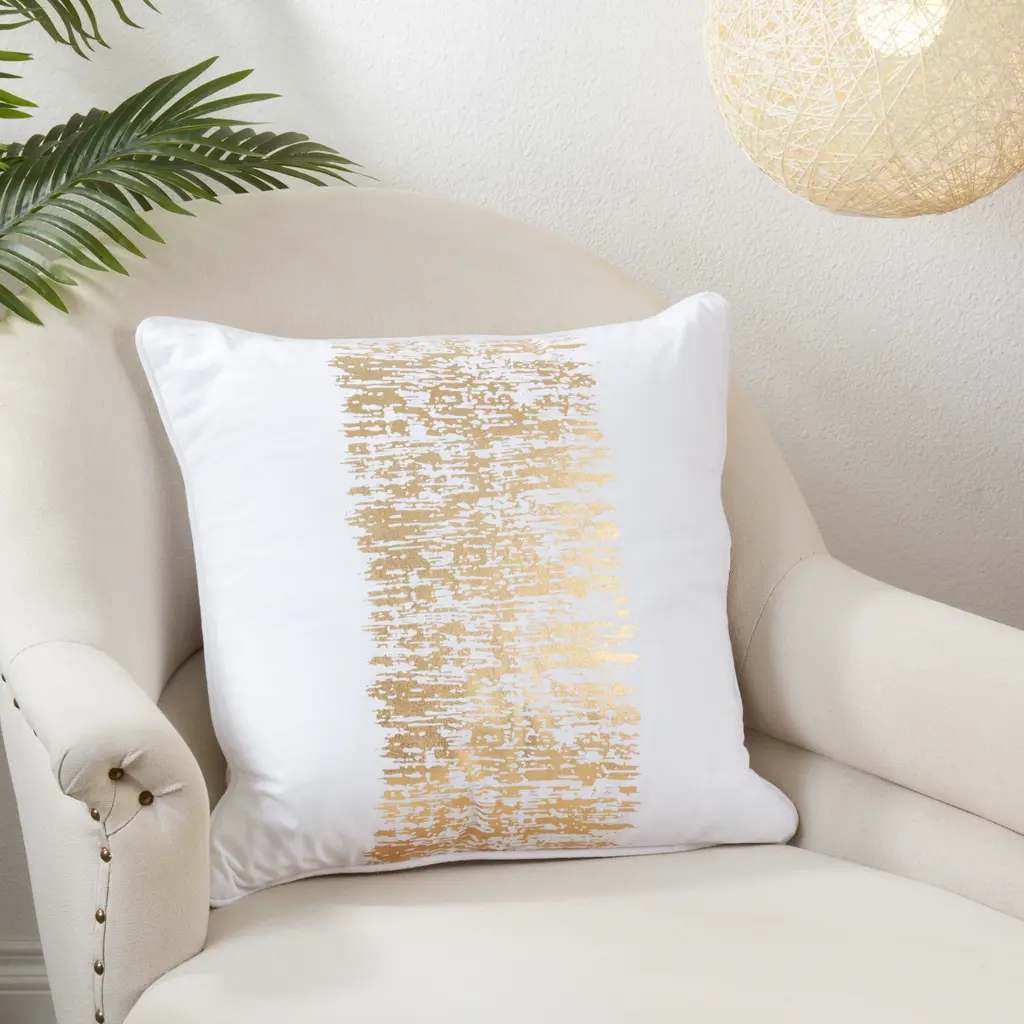 The Metallic Banded Design Throw Pillow is a great decor piece for modern or contemporary homes. It brings style and a dash of sparkle to your space, while maintaining a minimal look. The light background makes the design pop, but also makes the pillow easy to mix and pair with other accents.