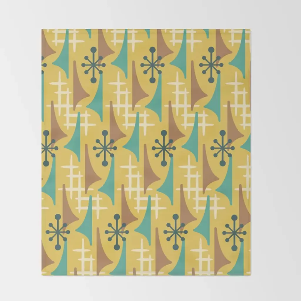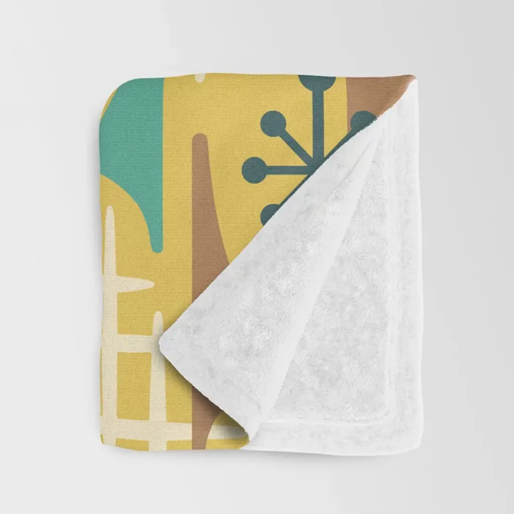 Mid Century Modern Atomic Wing Composition 55 Yellow Brown And Teal Throw Blanket