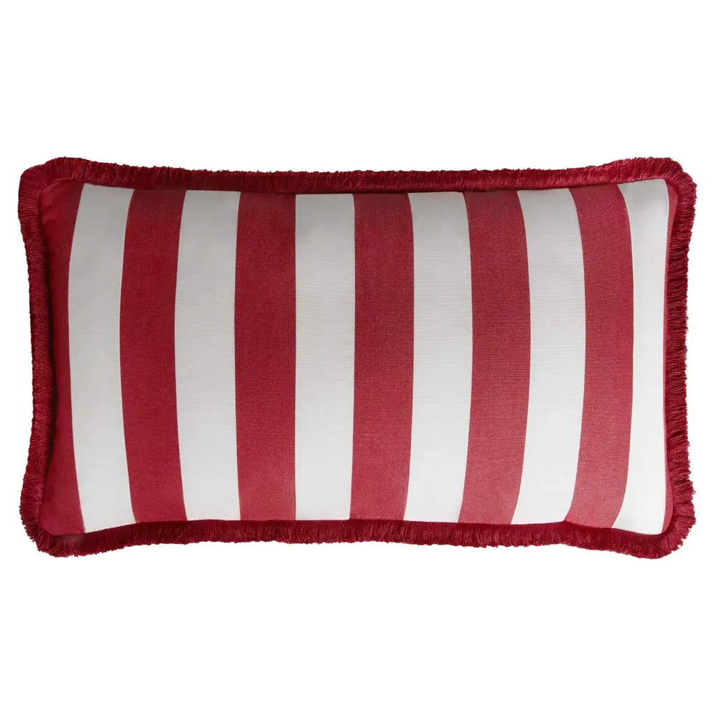 Mid Century Modern Minimalist Geo Chain Geometric Block Stripe Pattern In Red And Cream Throw Pillow