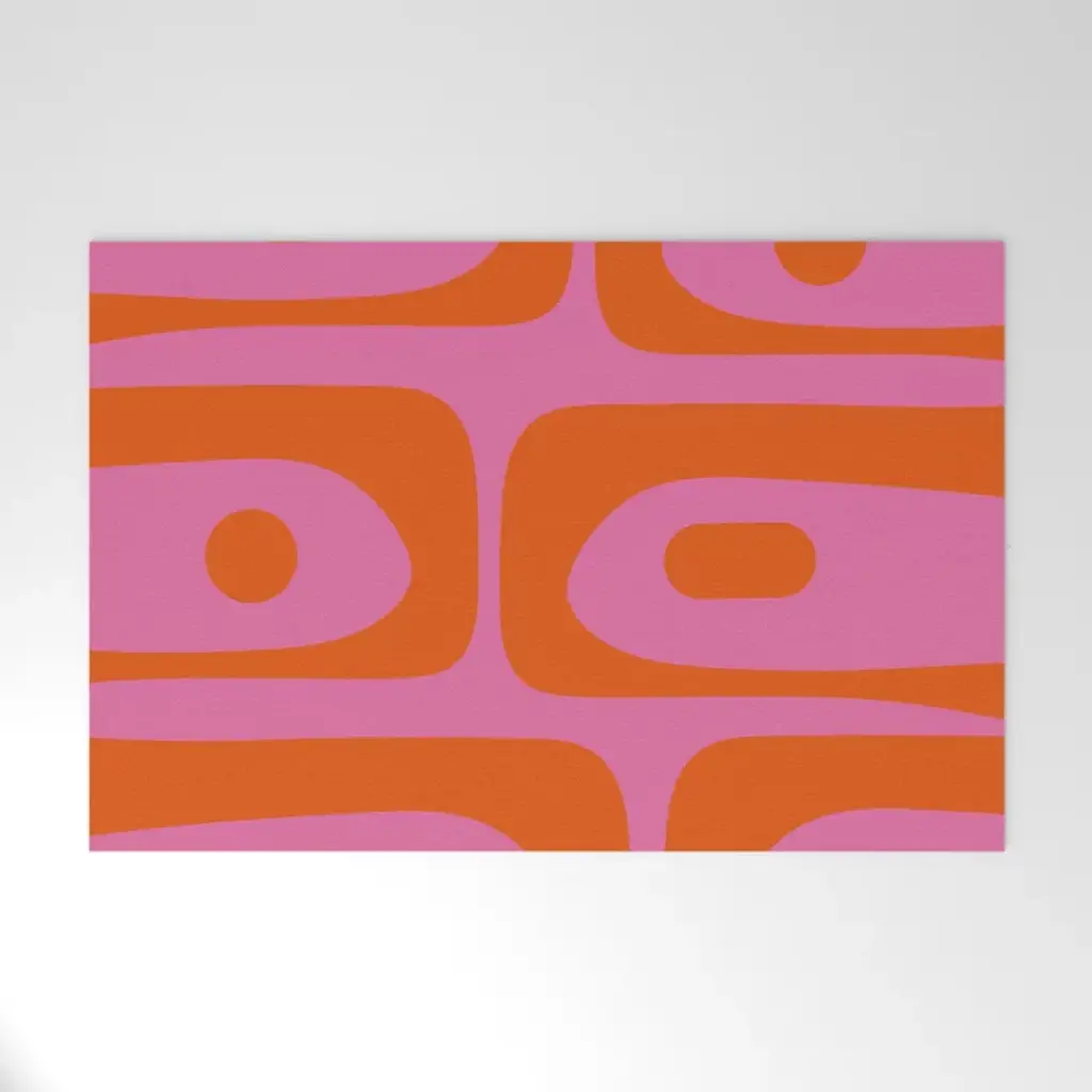 Mid-Century Modern Piquet Minimalist Abstract In Hot Pink And Retro Red Orange Throw Pillow