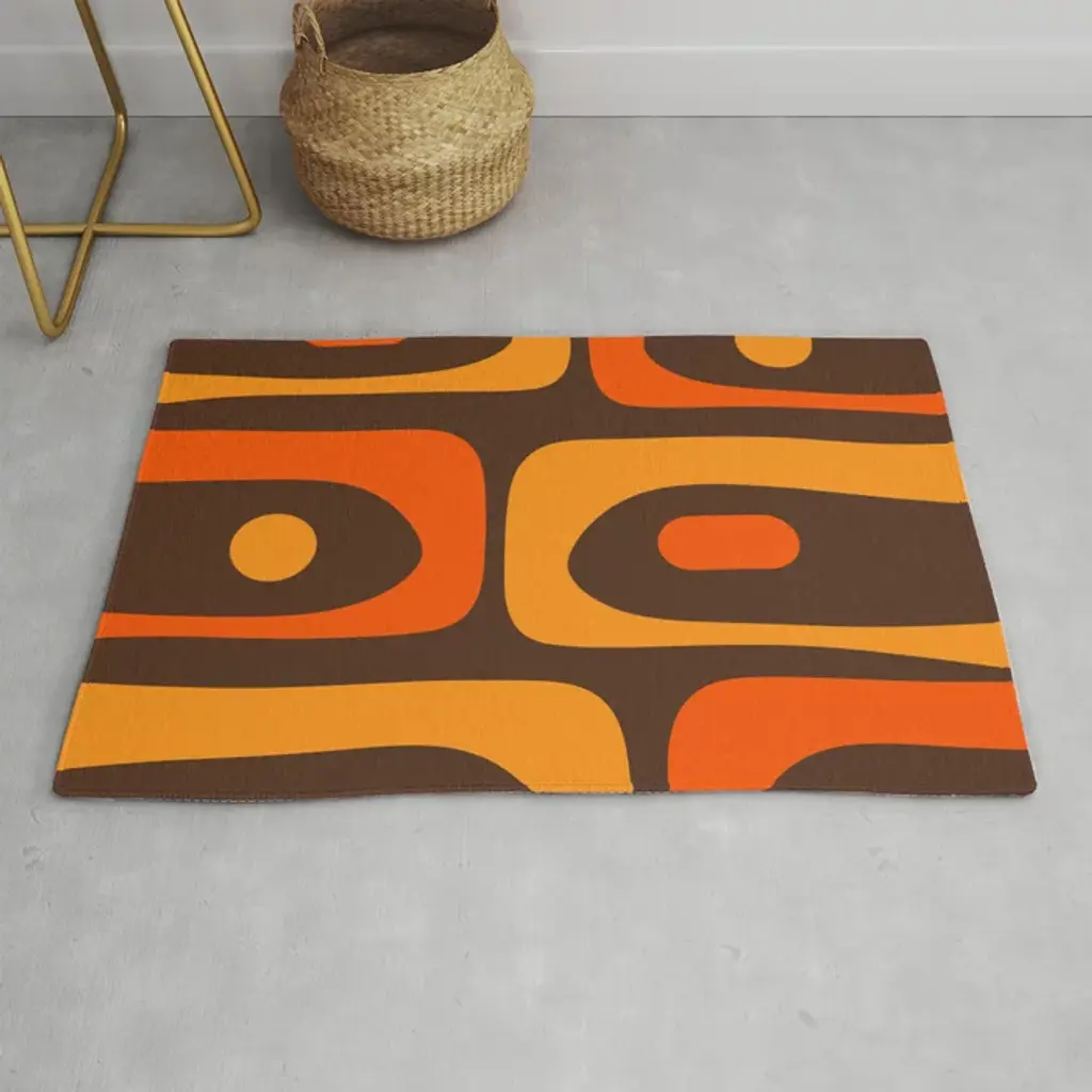Mid-Century Modern Piquet Retro Minimalist Abstract In 70s Brown And Orange Throw Pillow