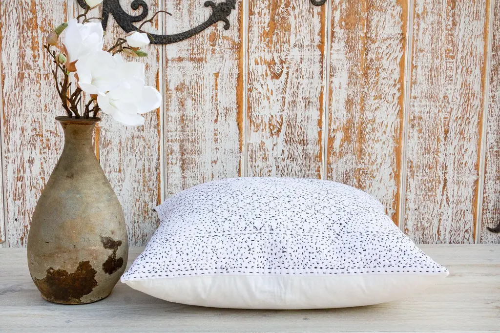 Celebrate the feminine with the handmade Filanan Gudari Pillow. This ornate pillow is cotton based and adorned with the Meghval tribe's thread work. The embroidered medallions in this incredibly soft piece of art represent the circle of life. Insert included. **Please bear in mind that colors of products shown may vary slightly from their original color due to monitor display settings or photography studio lighting.