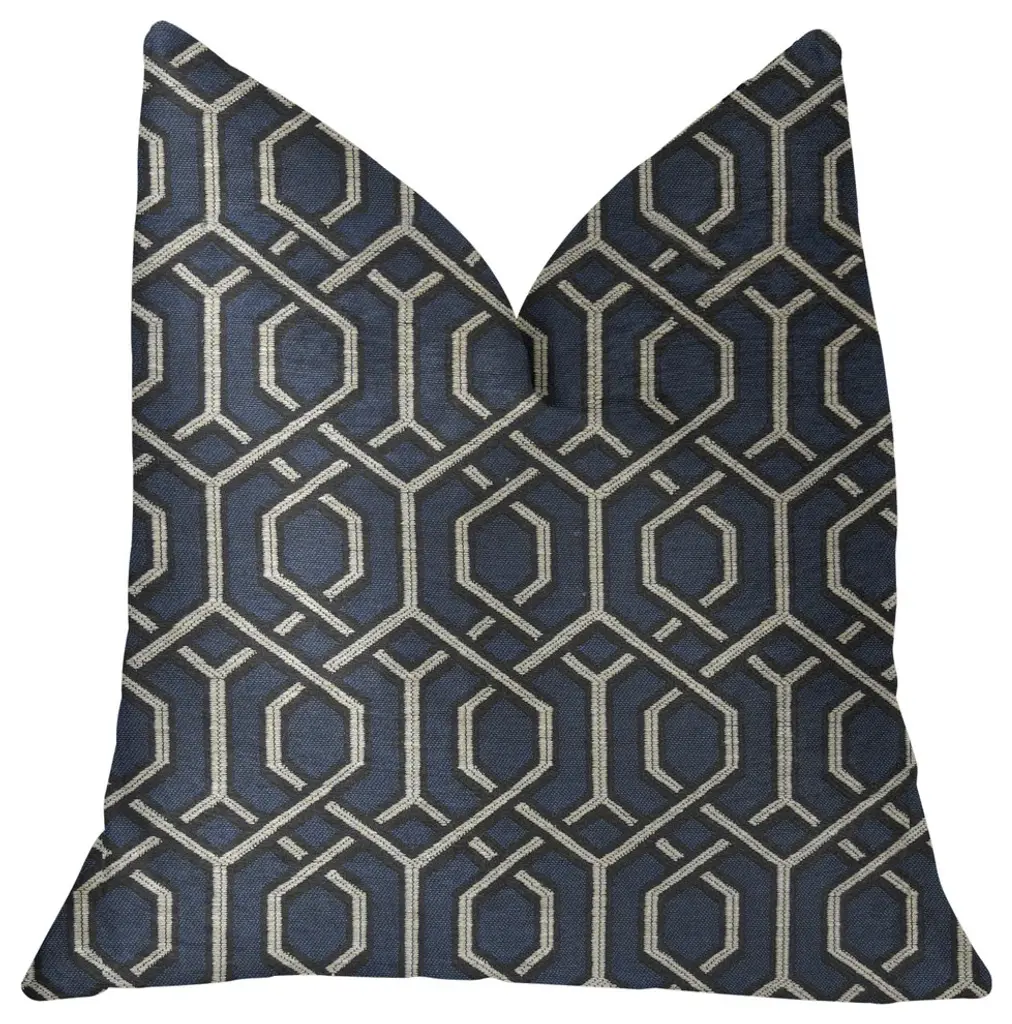Bring this eye-catching, edgy and sumptuous statement piece to your room. Add a great conversational piece in the house with this midnight padlock blue, black and beige luxury throw pillow. The fabric of this luxury pillow is a blend of Polyester.• Colors: Blue, Black and Beige• Fabric Origin: China. Pillows are Handmade in USA• Double Sided pillow• Invisible zipper enclosure for a tailored look• All seams are over-locked and stitched for a professional finish• Pattern placement may vary slightly• Pillow measurements are seam to seam from the inside• Pillows include • Made in USA• Hypoallergenic Down Alternative Polyfill Insert• Dry Clean recommended• Fabric Content: 100% Polyester• Pattern: Geometr