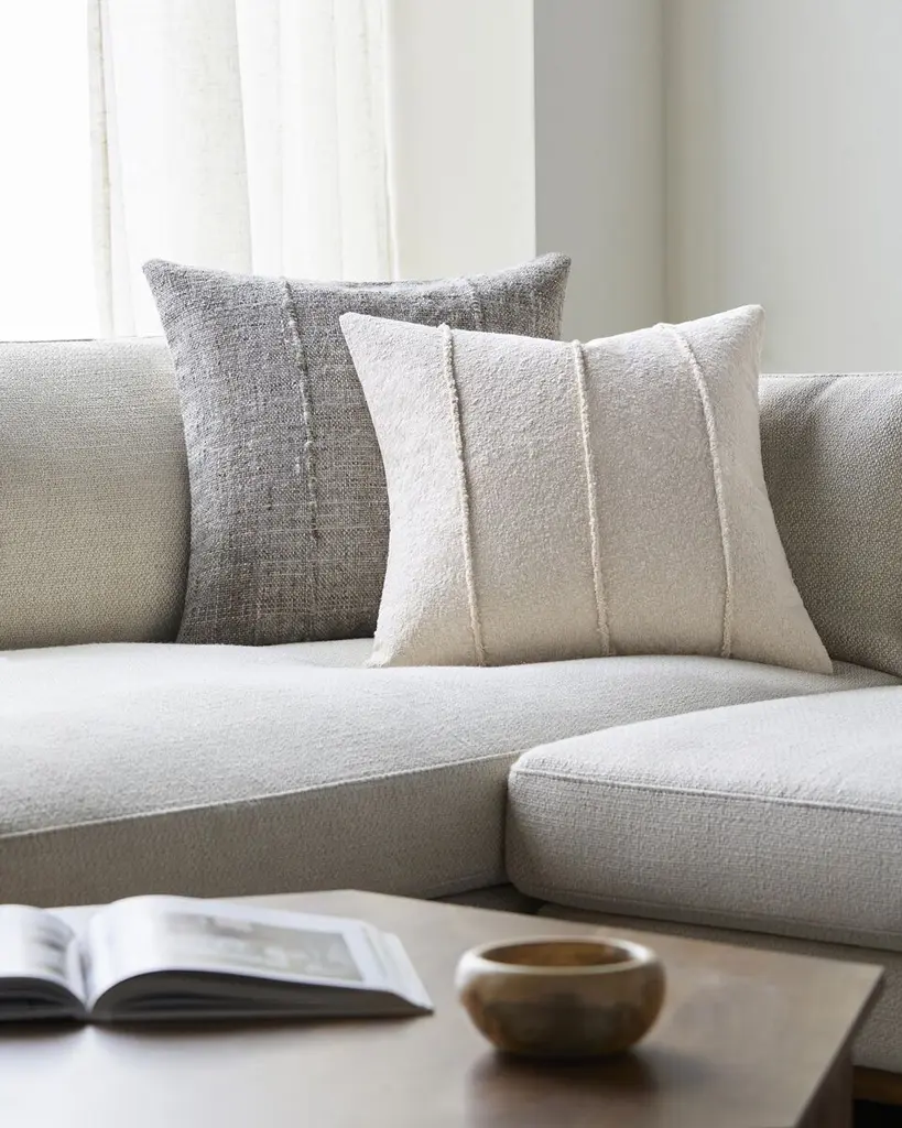 The Mindy accent pillow, a Becki Owens x Surya collaboration, brings effortless style and tactile interest to any space. Designed with understated elegance in mind, this cotton-made piece features three beautifully textured lines against an off-white backdrop that can effortlessly blend with any existing decor. Whether you're looking to add a touch of charm to your sofa or create a cozy reading nook, the Mindy accent pillow is sure to elevate your home style. Furthermore, it promises easy maintenance as it only requires spot cleaning with mild detergent. Made with love in India, this stylish pillow is more than just decor—it's a statement of fashion and comfort.