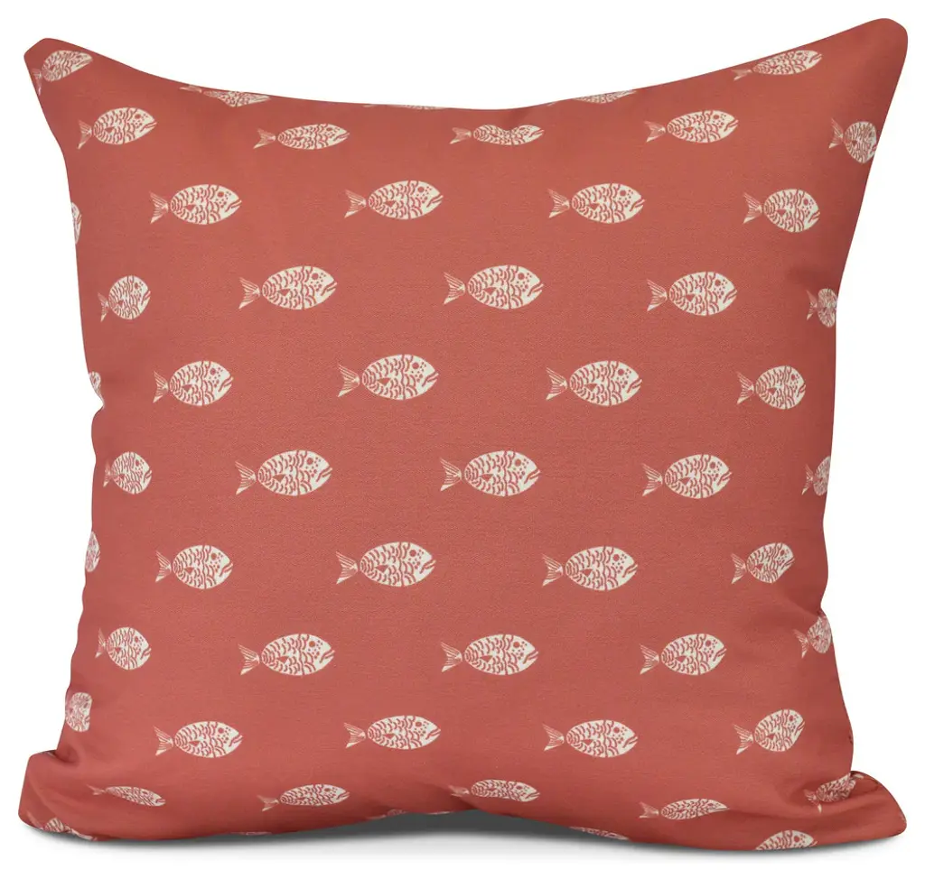 Mini Fish, Animal Print Outdoor Pillow,aqua,20 X 20 Inch