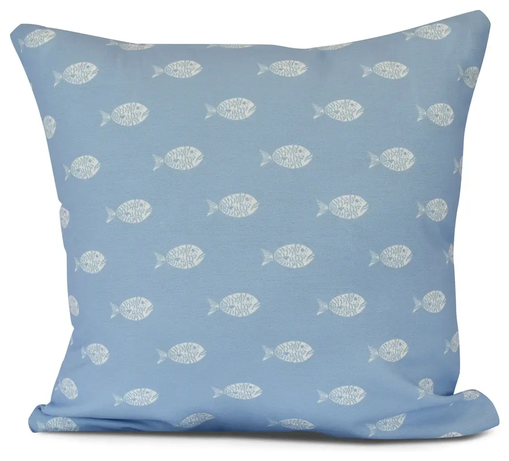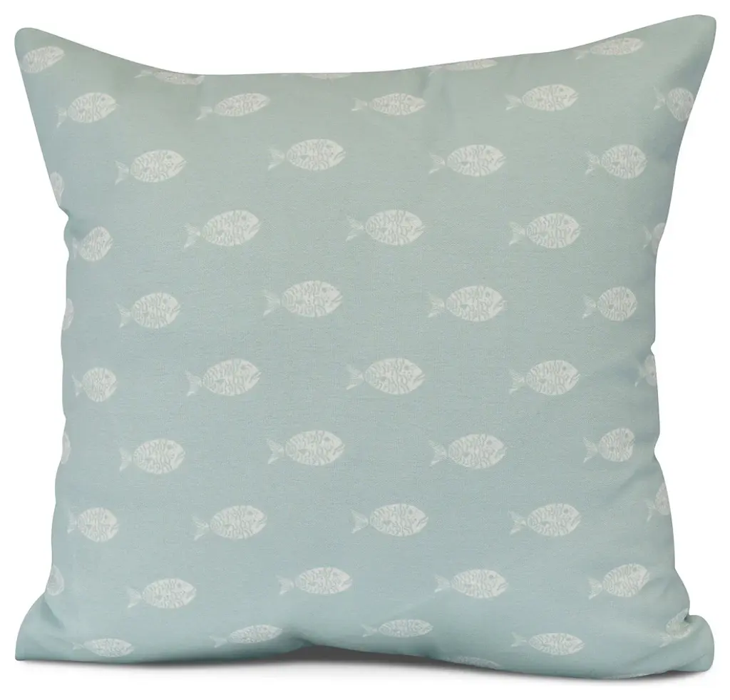 Mini Fish, Animal Print Outdoor Pillow,blue,16 X 16 Inch