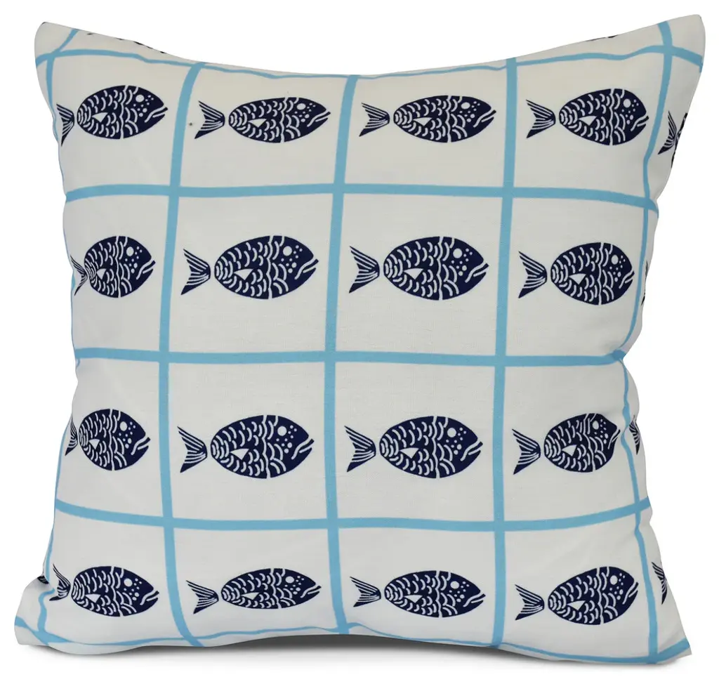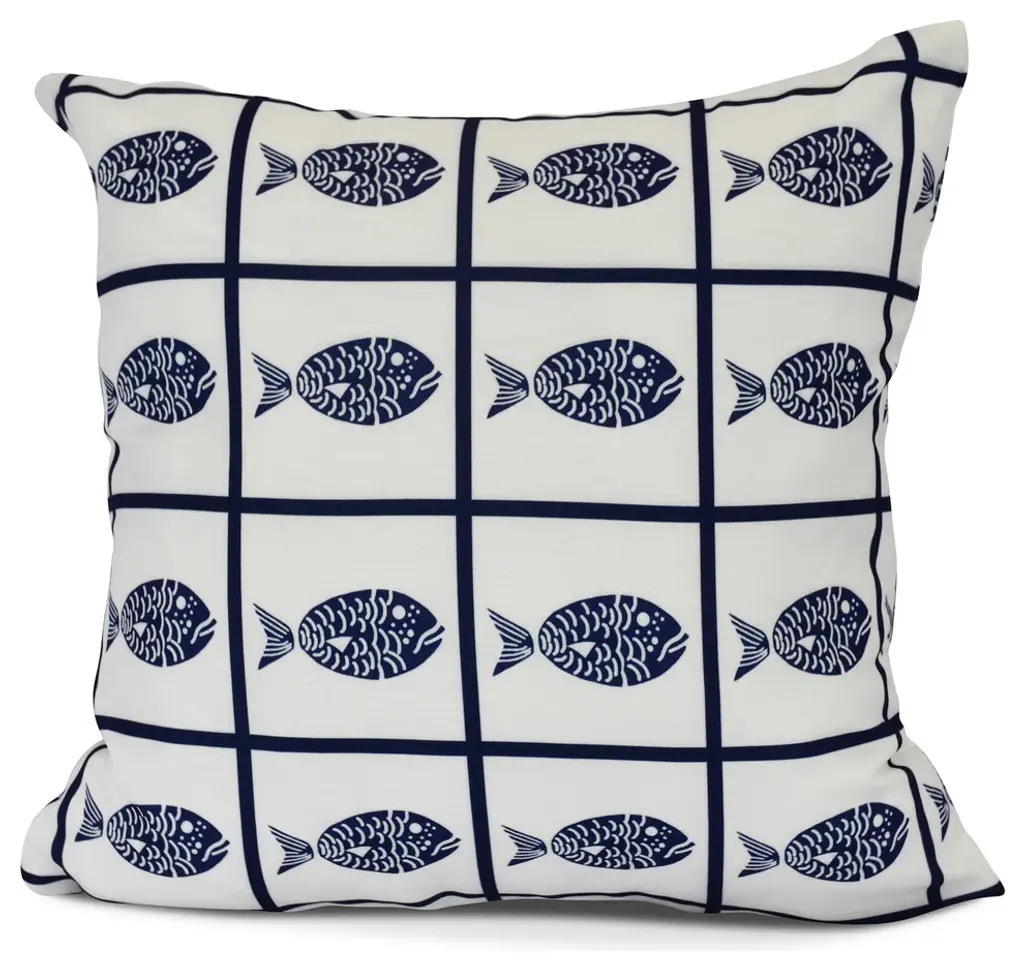 Mini Fish, Animal Print Outdoor Pillow,navy Blue,16 X 16 Inch