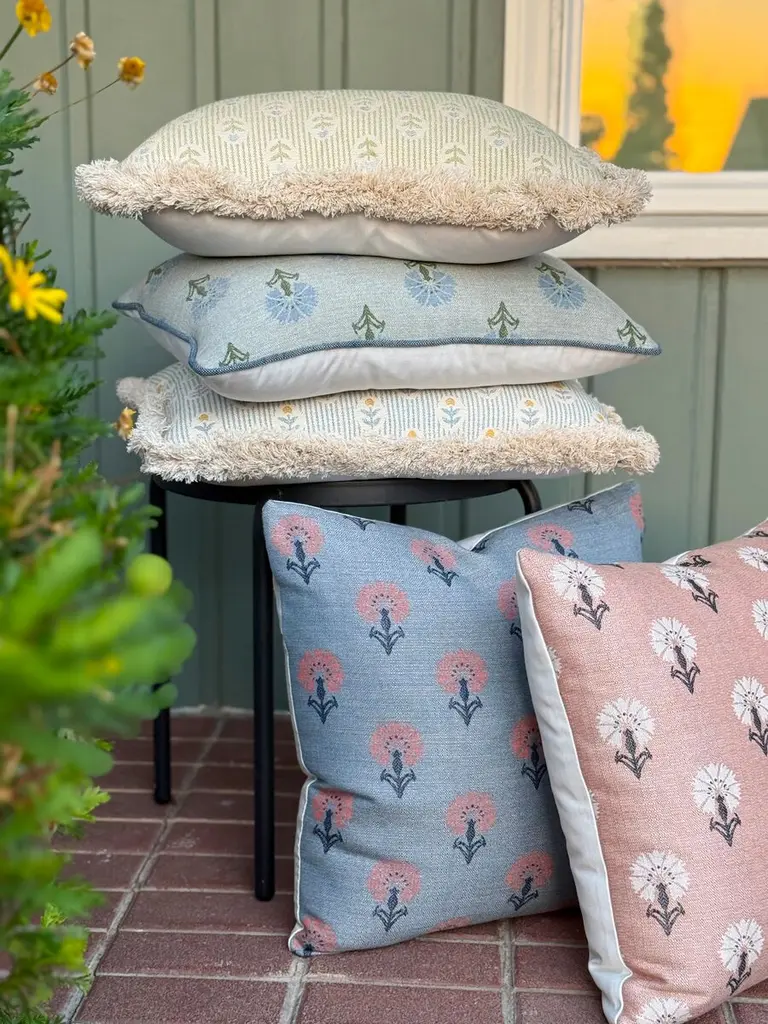 With its soft colors and playful motifs, this pillow is a fun addition to just about any outdoor or indoor space. The easy-to-clean pillow cover resists fading, mold, and soil. The pillow fill, made of a silky polyester reminiscent of down, is equally well suited to outdoor spaces. Solid back.