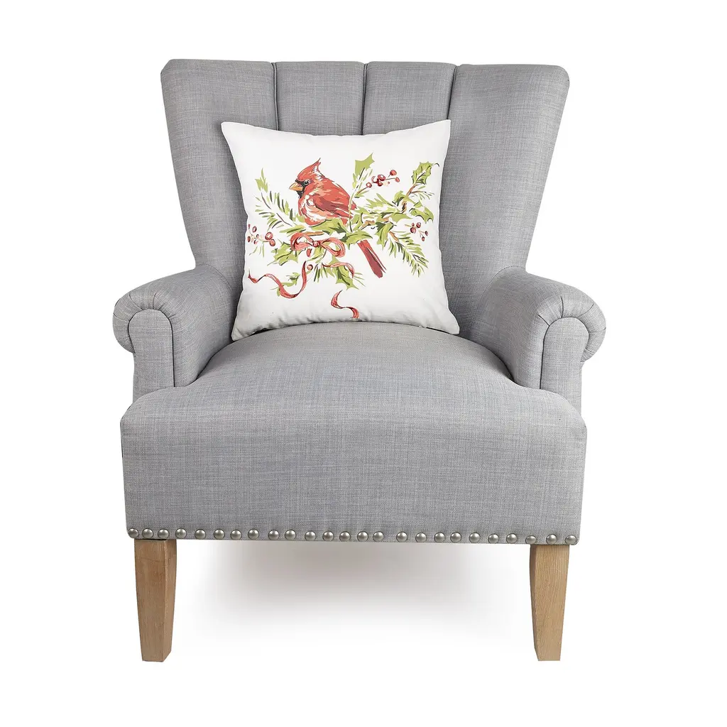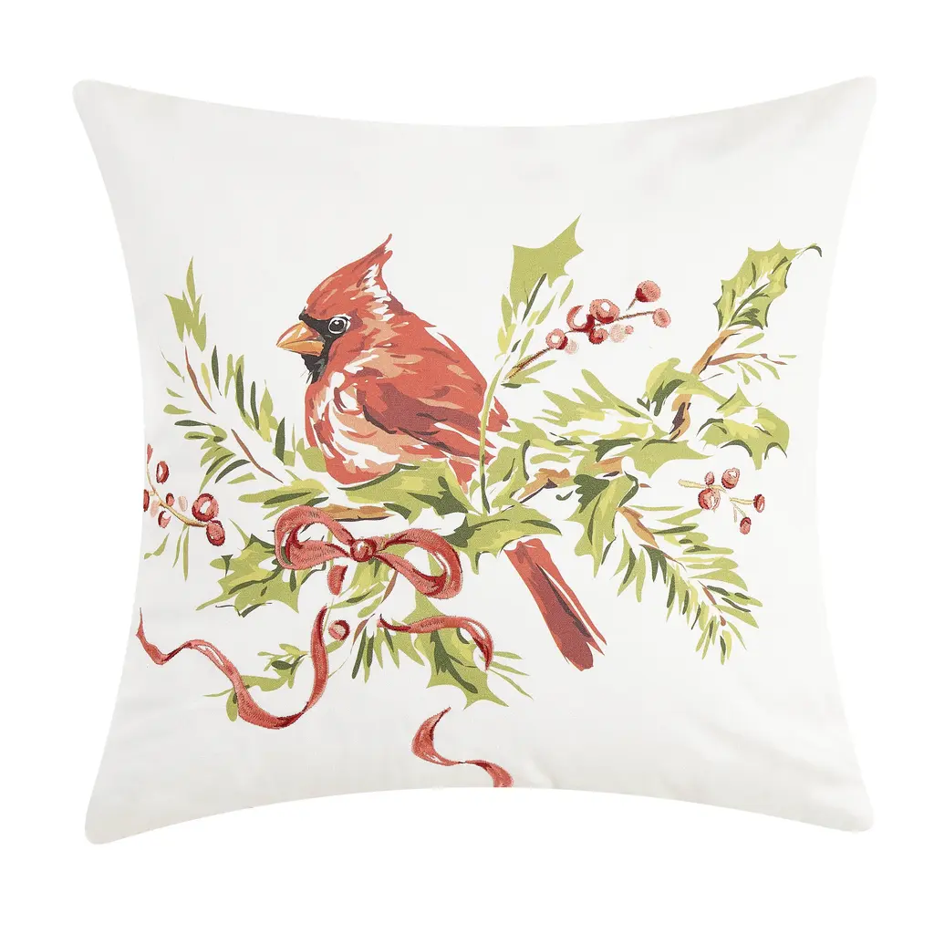 Mistletoe & Co. Cardinal On Holly Branch Embroidered Pillow - Red/green - 16 X 16 - Bird