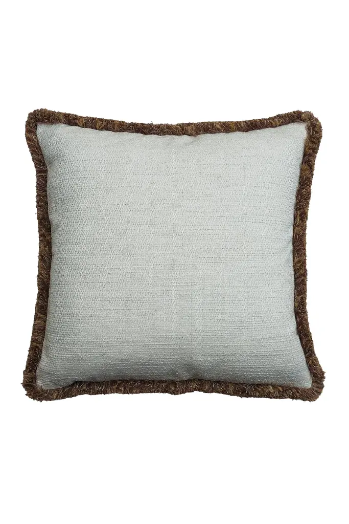 The color is rich, warm, and blends well into a world of pillow ensembles. The fabric has a velvety feel and a matte look; pewter brush fringe adds a textured edge.